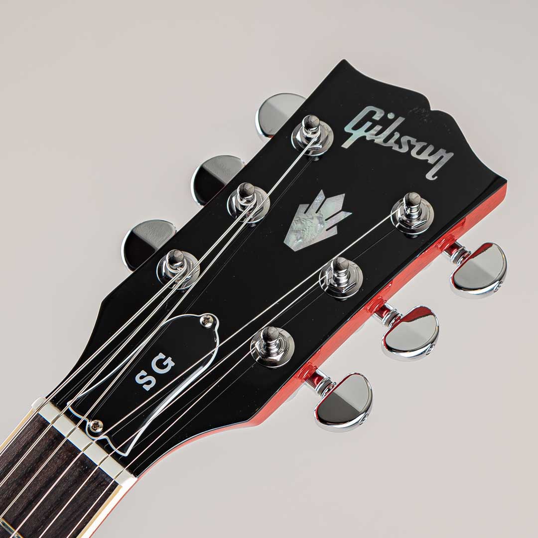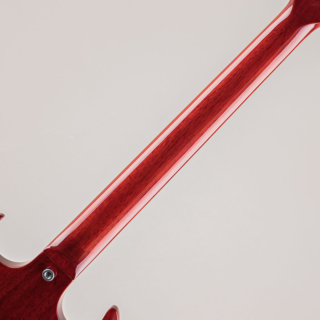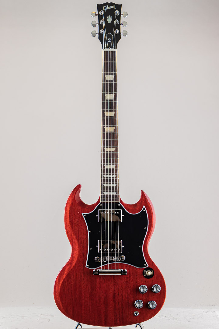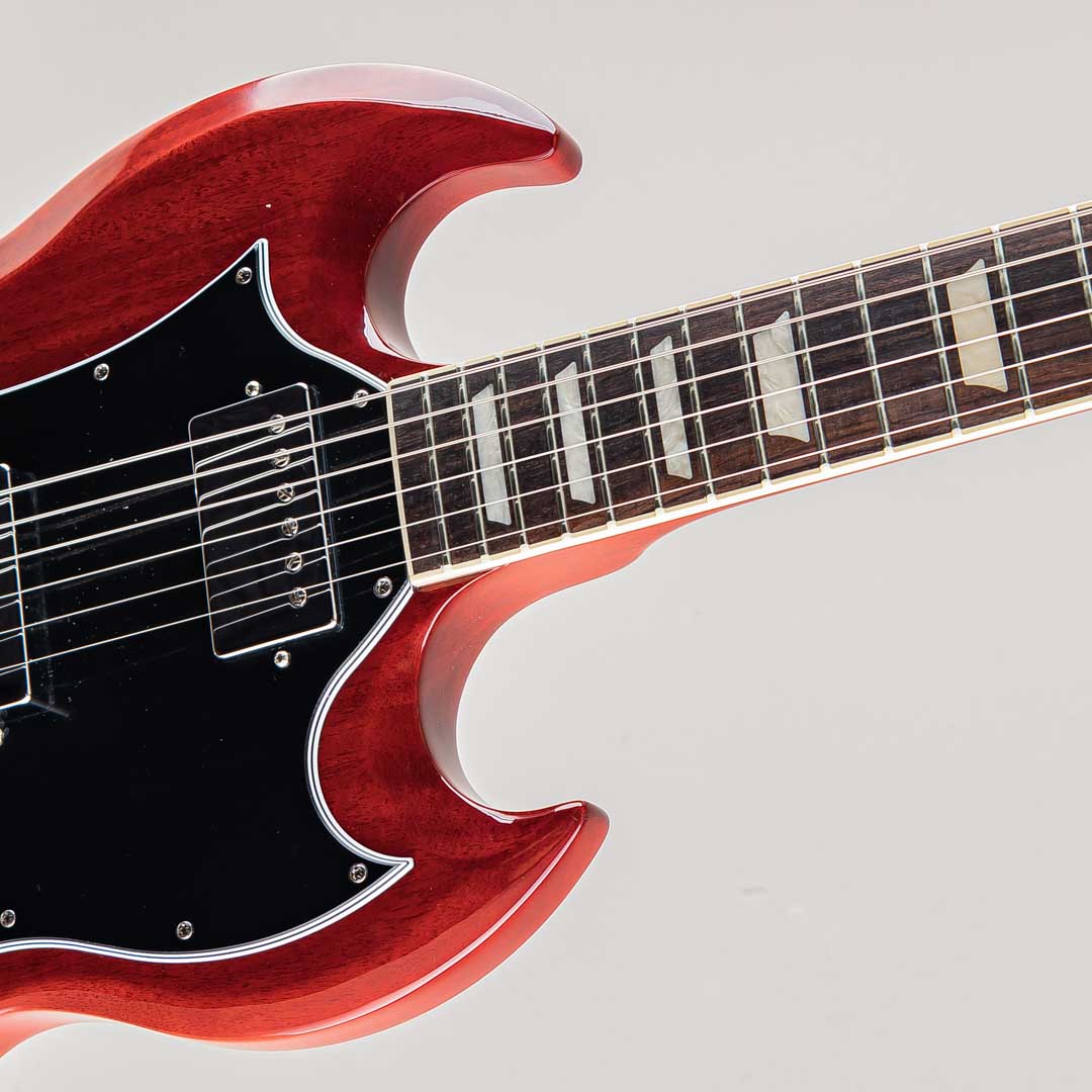 レスポールの後継モデルとして誕生したSGですが、レスポールとは違った独特のサウンドとルックスは数多くのギタリストに愛され続けております。ウッドマテリアルはマホガニーボディ&ネック、ローズウッド指板にて構成。若干の肉厚さを感じさせるネックシェイプではございますが、ロールエッジ処理が施されたバインディグ面やハイフレットのアクセスがしやすいカッタウェイ構造により、快適な弾き心地が実現。ピックアップには490R&490Tを搭載。SGらしい軽やかでありながらもパンチを感じられるグッドサウンドでございます。