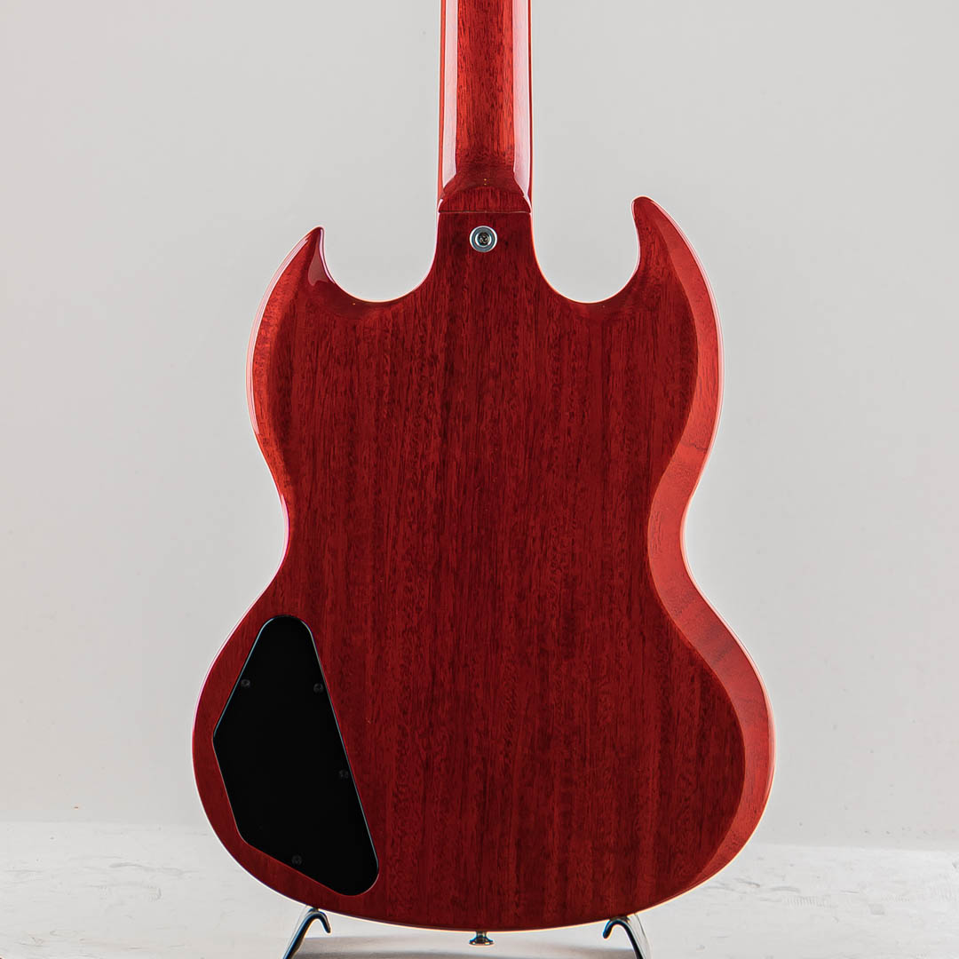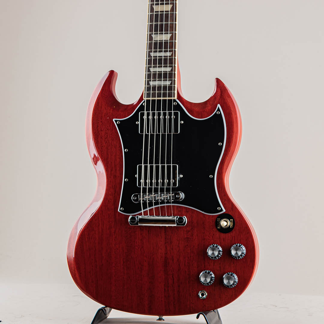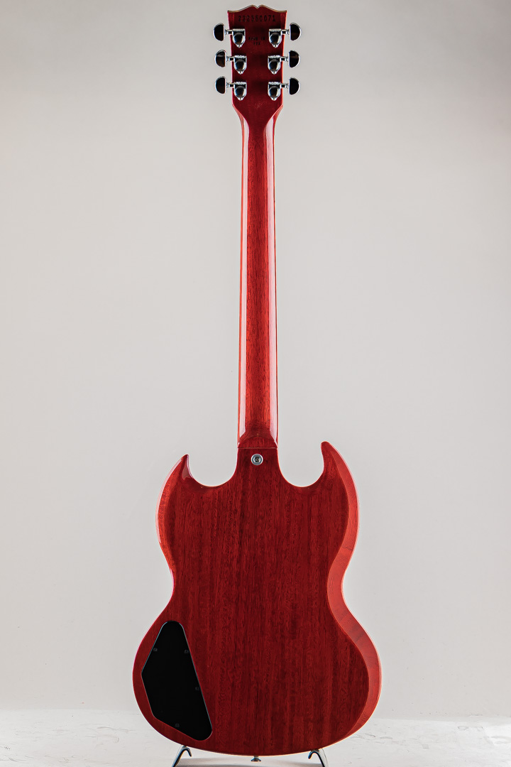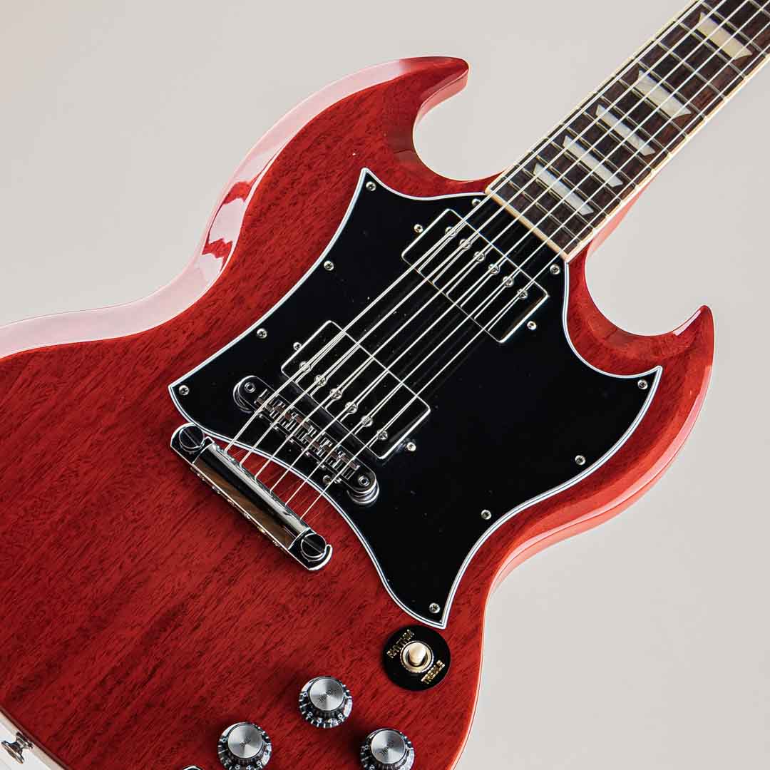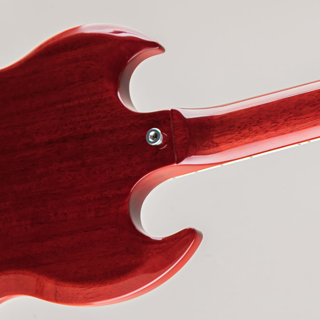 レスポールの後継モデルとして誕生したSGですが、レスポールとは違った独特のサウンドとルックスは数多くのギタリストに愛され続けております。ウッドマテリアルはマホガニーボディ&ネック、ローズウッド指板にて構成。若干の肉厚さを感じさせるネックシェイプではございますが、ロールエッジ処理が施されたバインディグ面やハイフレットのアクセスがしやすいカッタウェイ構造により、快適な弾き心地が実現。ピックアップには490R&490Tを搭載。SGらしい軽やかでありながらもパンチを感じられるグッドサウンドでございます。
