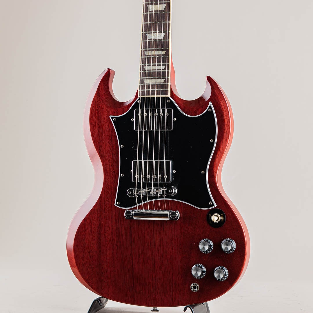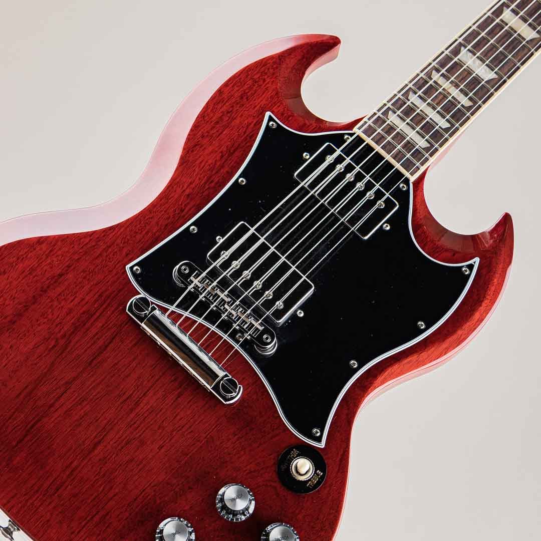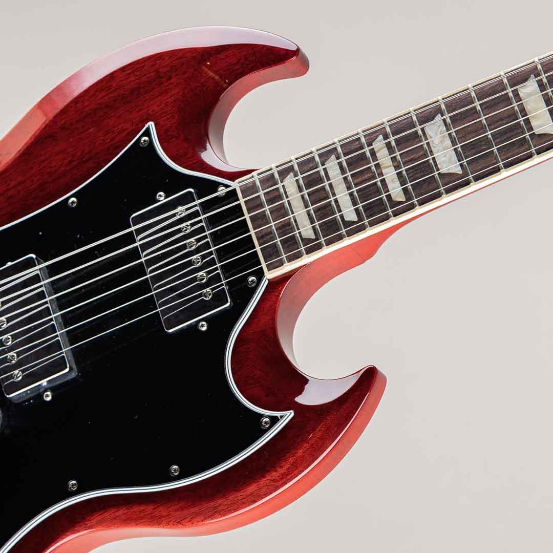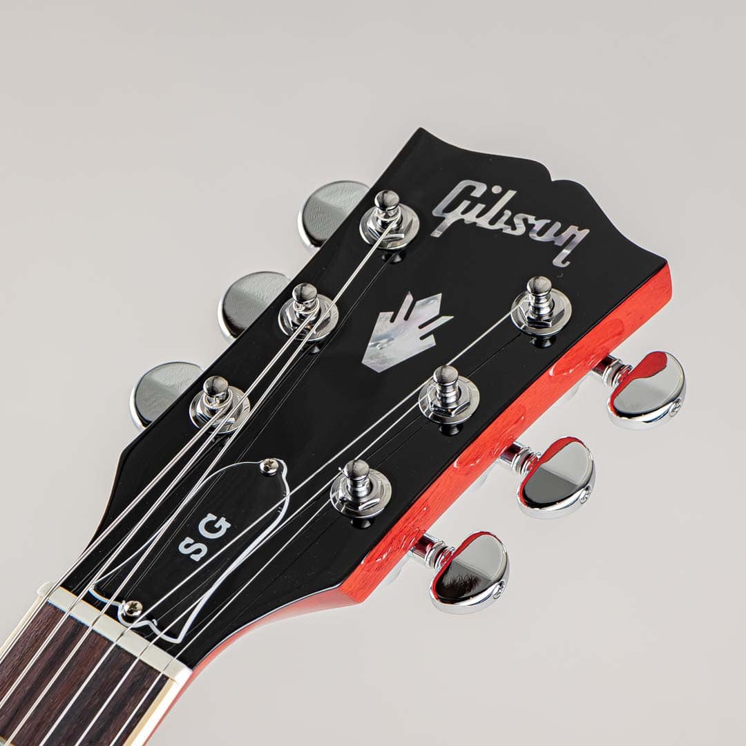レスポールの後継モデルとして誕生したSGですが、レスポールとは違った独特のサウンドとルックスは数多くのギタリストに愛され続けております。ウッドマテリアルはマホガニーボディ&ネック、ローズウッド指板にて構成。若干の肉厚さを感じさせるネックシェイプではございますが、ロールエッジ処理が施されたバインディグ面やハイフレットのアクセスがしやすいカッタウェイ構造により、快適な弾き心地が実現。ピックアップには490R&490Tを搭載。SGらしい軽やかでありながらもパンチを感じられるグッドサウンドでございます。