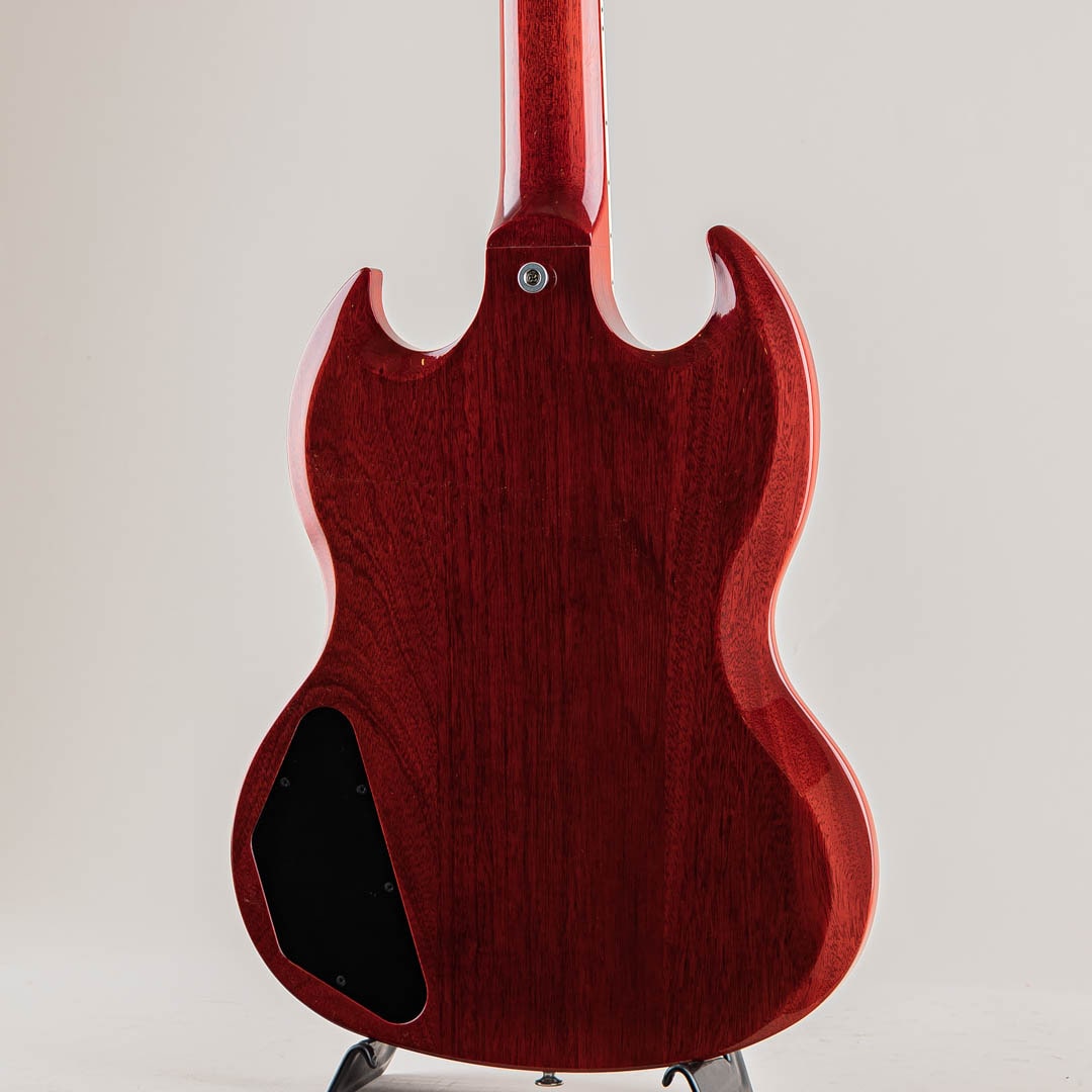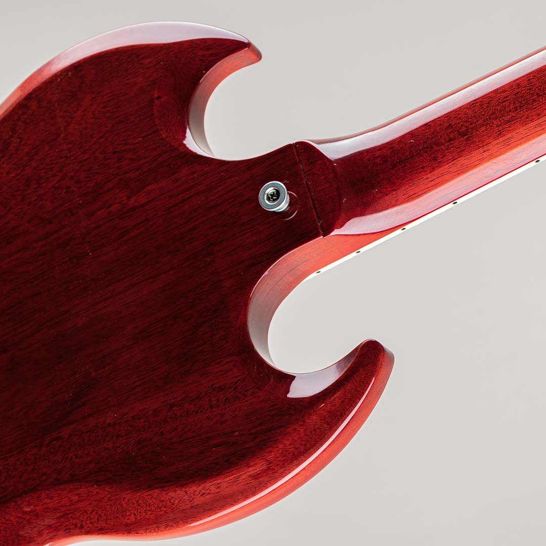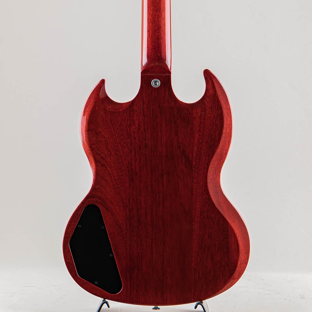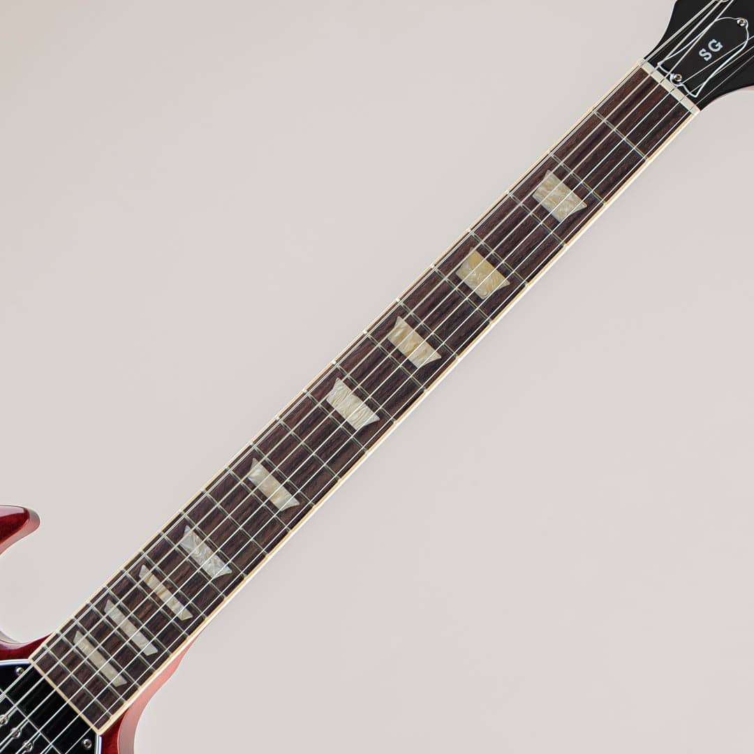 レスポールの後継モデルとして誕生したSGですが、レスポールとは違った独特のサウンドとルックスは数多くのギタリストに愛され続けております。ウッドマテリアルはマホガニーボディ&ネック、ローズウッド指板にて構成。若干の肉厚さを感じさせるネックシェイプではございますが、ロールエッジ処理が施されたバインディグ面やハイフレットのアクセスがしやすいカッタウェイ構造により、快適な弾き心地が実現。ピックアップには490R&490Tを搭載。SGらしい軽やかでありながらもパンチを感じられるグッドサウンドでございます。