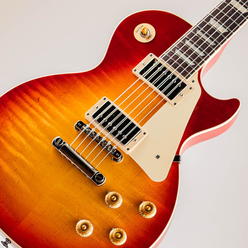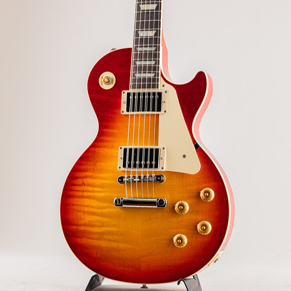 世代や音楽ジャンルの垣根を超えて、エレクトリックギターの代名詞ともいえるレスポール。そのサウンドとルックスはGibsonを代表するフラッグシップモデルとして、今尚君臨し続けております。この度入荷いたしましたのはUSファクトリーメイドのレスポール・スタンダード50s。ウェイトリリーフ加工が施されていないマホガニーバック / フィギュアド・メイプルトップ / マホガニーネック / ローズウッド指板にて構成された王道ウッドマテリアル。ネックシェイプは豊かなCカーブを描いたVintage 50sシェイプを採用。その他、ABR-1ブリッジ / クルーソンペグ / ゴールドトップハットノブ等、黄金期のレスポールスタイルを基にした充実のスペックを搭載しております。