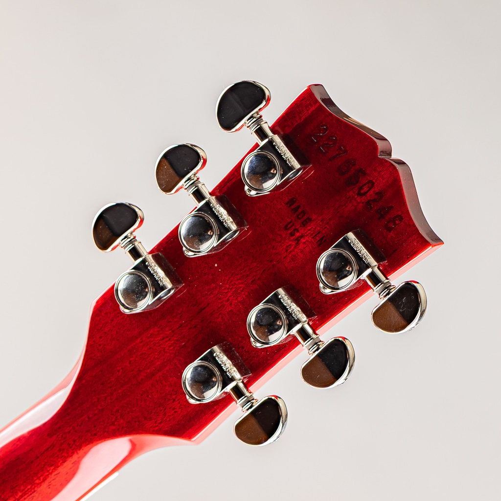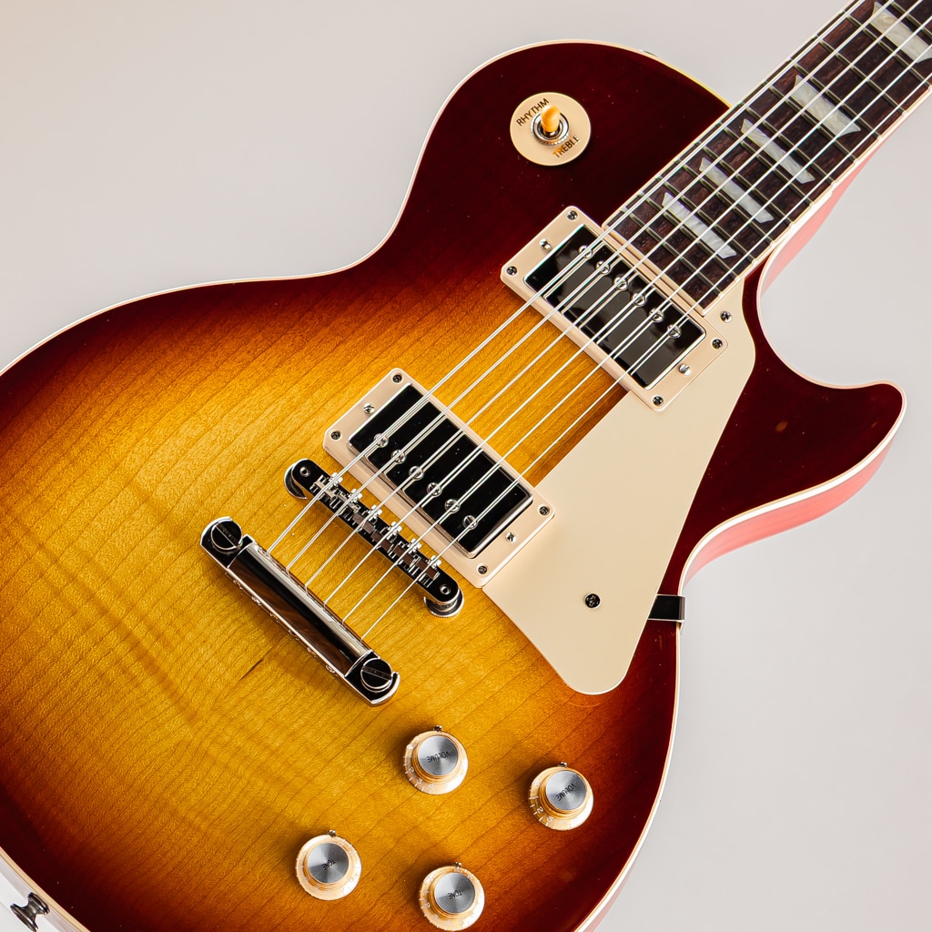 幾多のマイナーチェンジ・仕様変更を経てその時代のスタンダードとして生産され続けていた当モデルですが、今回は原点回帰的な仕様の'50s&'60sの2モデルとなって登場しました。ウェイトリリーフ(肉抜き軽量化)を無くしたソリッドマホガニーボディにメイプルトップ。ローズ指板にマホガニーネックは50s系プロファイルよりやや薄めで演奏性を高めたスリム・テーパーグリップで、滑らかに処理された指板サイドエッジやミディアムジャンボフレットもありさらに演奏性を向上。ピックアップには60's Burstbuckerを、コンデンサーにはオレンジドロップを搭載。コントロールはセレクター・各ボリューム&トーンのシンプルで簡単なサーキットレイアウトとなっております。