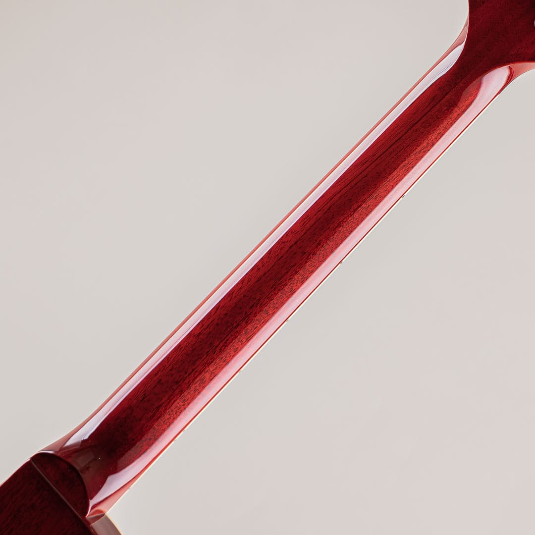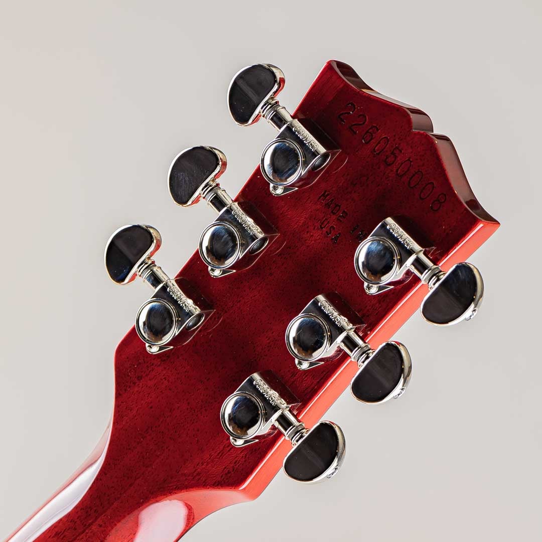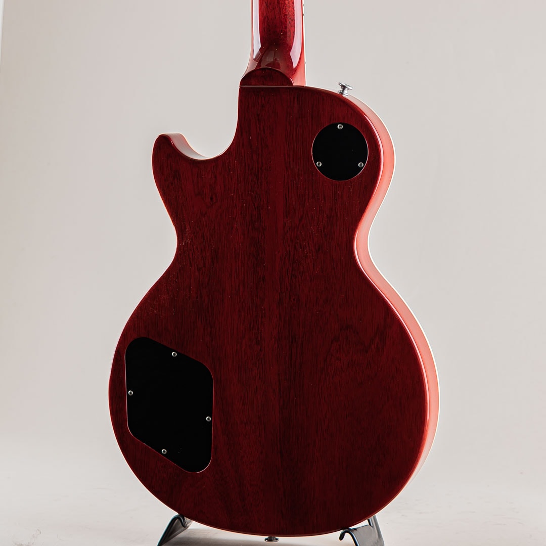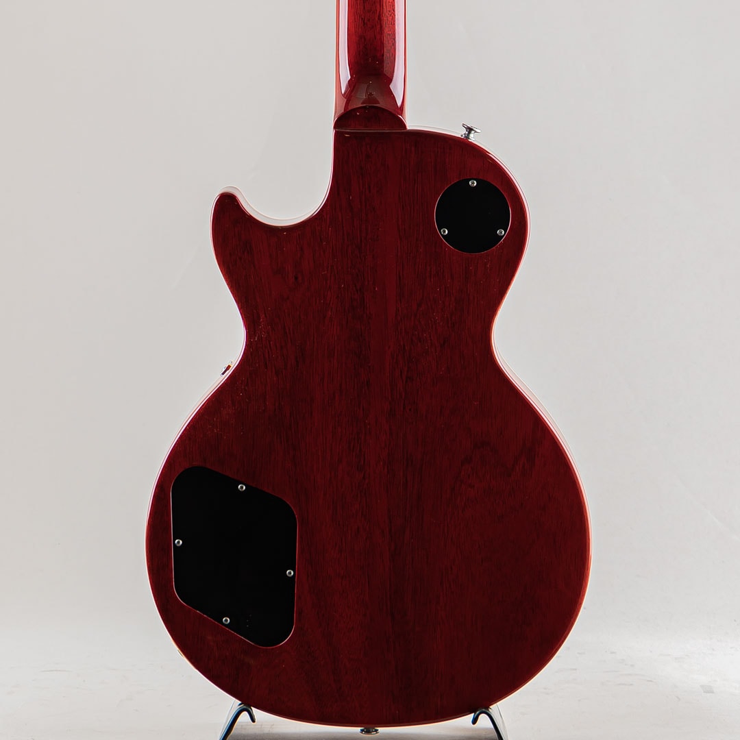 幾多のマイナーチェンジ・仕様変更を経てその時代のスタンダードとして生産され続けていた当モデルですが、今回は原点回帰的な仕様の'50s&'60sの2モデルとなって登場しました。ウェイトリリーフ(肉抜き軽量化)を無くしたソリッドマホガニーボディにメイプルトップ。ローズ指板にマホガニーネックは50s系プロファイルよりやや薄めで演奏性を高めたスリム・テーパーグリップで、滑らかに処理された指板サイドエッジやミディアムジャンボフレットもありさらに演奏性を向上。ピックアップには60's Burstbuckerを、コンデンサーにはオレンジドロップを搭載。コントロールはセレクター・各ボリューム&トーンのシンプルで簡単なサーキットレイアウトとなっております。