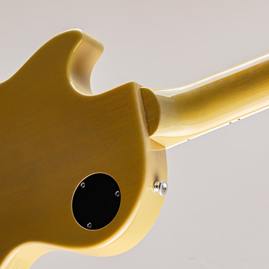 55年の発表以降、有名アーティストの使用や、粘り気のある独特な中音域が魅力的なサウンドは、登場から人気のモデル。フラットなシングルカット・マホガニーボディにマホガニーネック&ローズ指板、グリップは少し太さを残しつつもフィット感の良いVintage 50sグリップを採用し、杢目が透けた雰囲気あるVintage Yellowでフィニッシュ。