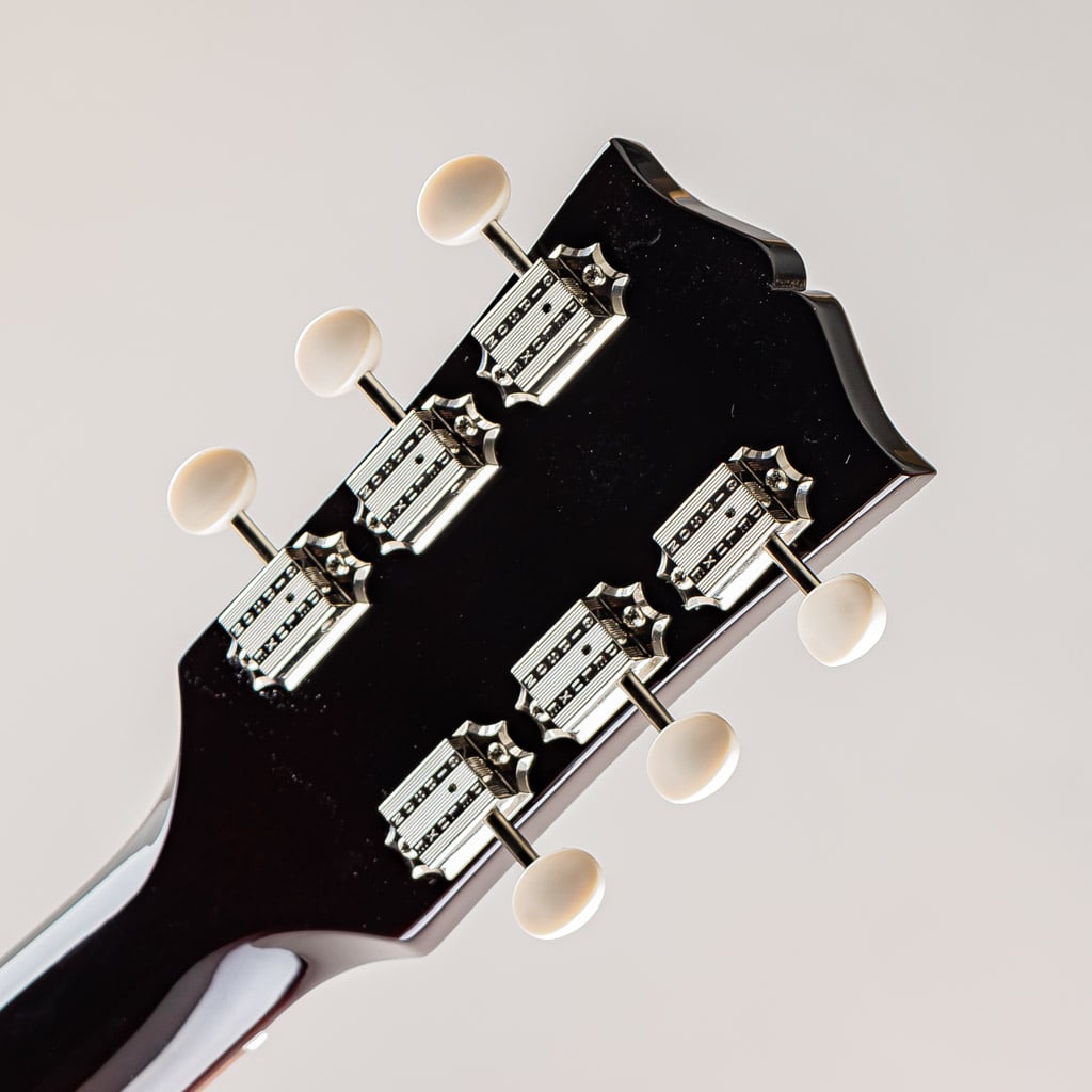 フラットトップのマホガニーボディ、マホガニー/ローズ指板のウッドマテリアルにて構成。その他のスペック面としてはクルーソンペグ、ブラックトップハットノブ、ラップアラウンドブリッジが採用されております。スタンダードモデルなどに採用されるフィギュアドメイプル、バインディング等を採用しないことにより、コストダウンが図られながらも無骨で味のあるデザイン性は、エントリークラスながら人気の根強いモデルでございます。