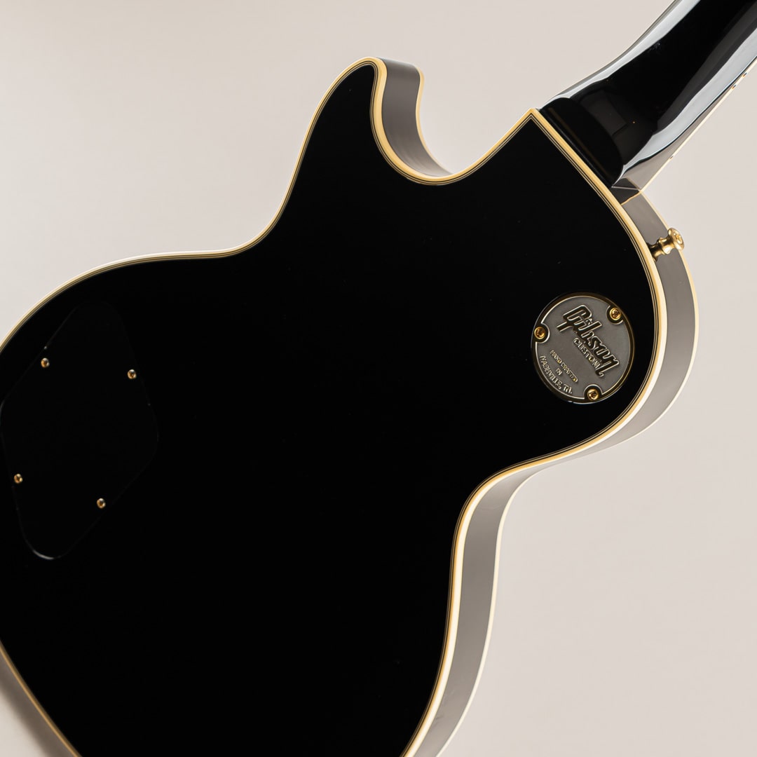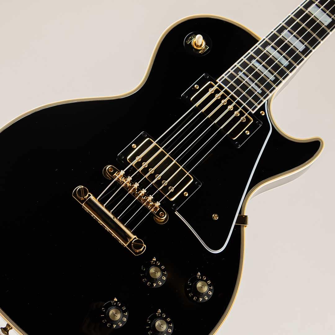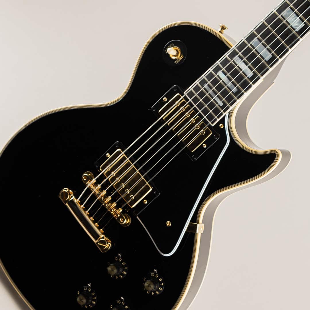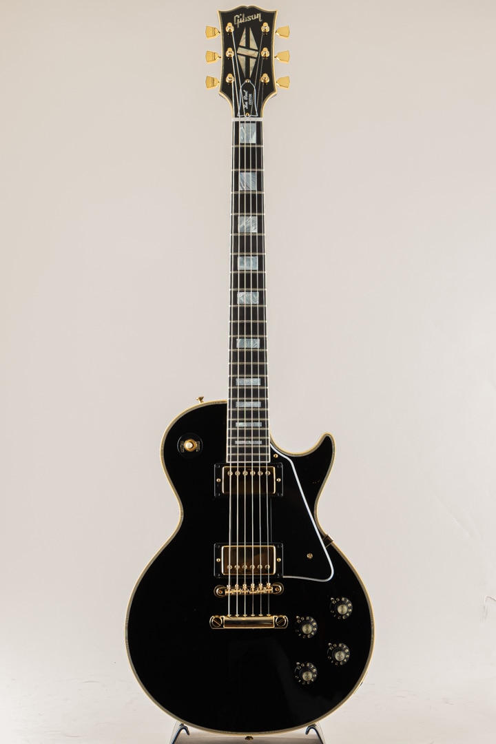 この度入荷いたしましたのは、Les Paulモデルの中でも最上位グレードとして開発されたLes Paul Customでございます。エボニー指板にマザーオブパールのポジションインレイ、ボディには7層のマルチバインディング。オールエボニーカラーのボディとゴールドハードウェアがあしらわれ、豪華でありながらもどこか凛とした佇まいを感じさせる抜群のルックスでございます。