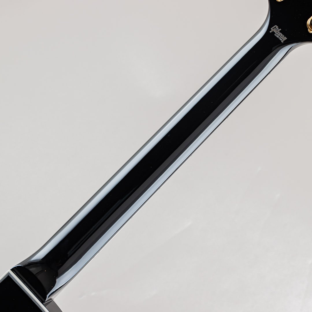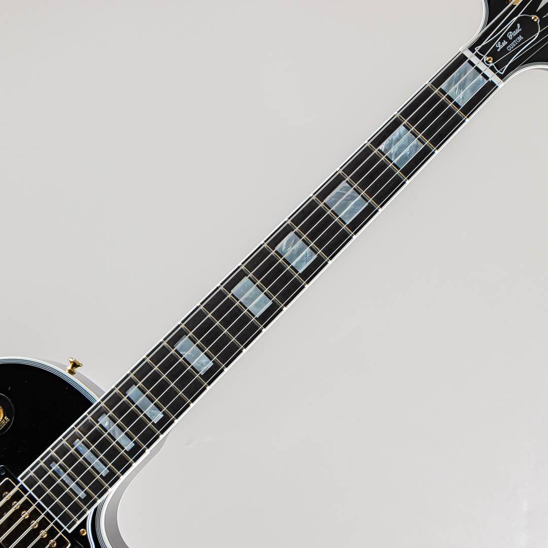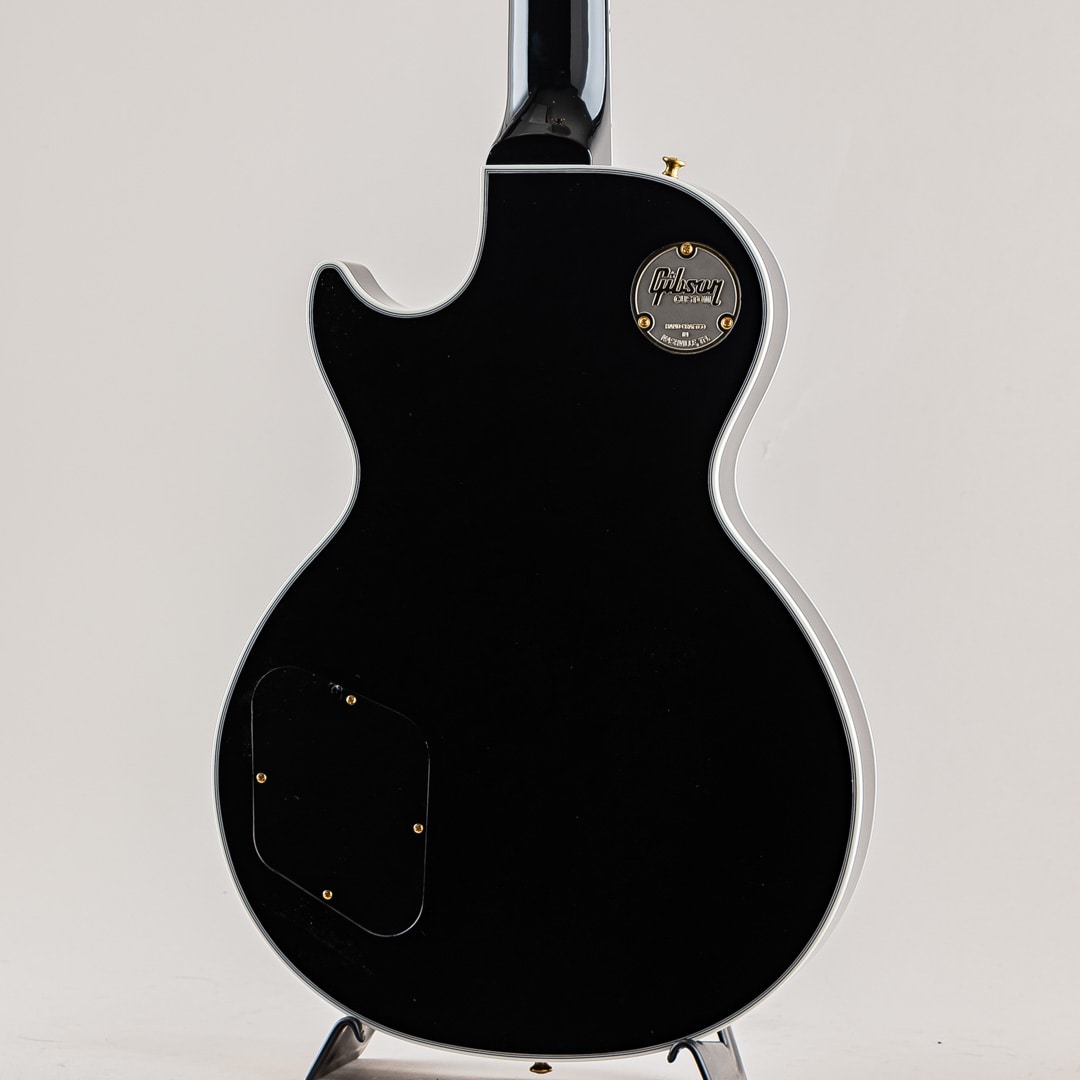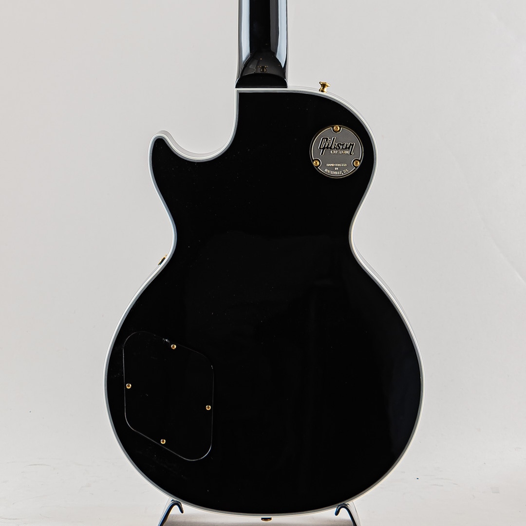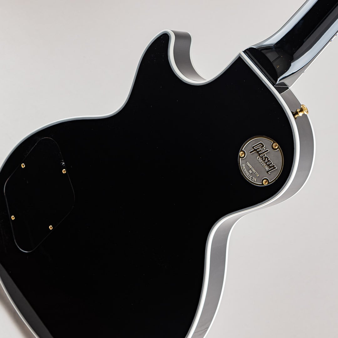 この度入荷致しましたのは1968年以降のスペックをベースに制作されたレスポール・カスタムでございます。ウッドマテリアルはメイプルトップ/マホガニーバック/マホガニーネック/エボニー指板で構成されており、マホガニーバックには軽量化を図るためナイン・ホール・ウェイトリリーフが施されております。