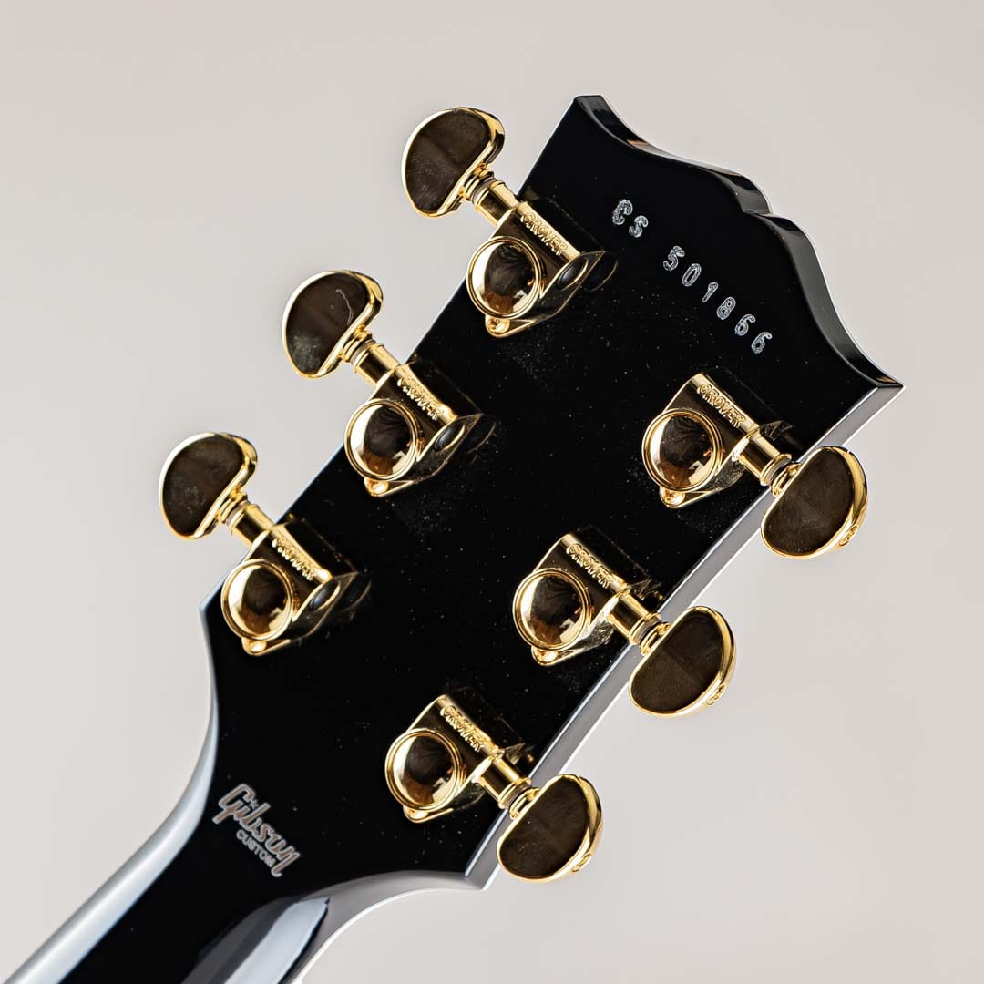 肉厚が薄めなネックシェイプはシェイクハンドスタイルからクラシカルスタイルまで対応が可能、特定の年式にこだわらないことでモダンな要素を取り入れることができ、プレイアビリティの向上が図られております。そうしたモダンな要素を取り入れながらも、カスタムを象徴するマザーオブパールのスプリット・ダイヤモンド・インレイとブロックインレイ、多重バインディング等もちろん採用されておりますので、部屋に立て掛けておくだけでも満足感の得られるルックスでございます。