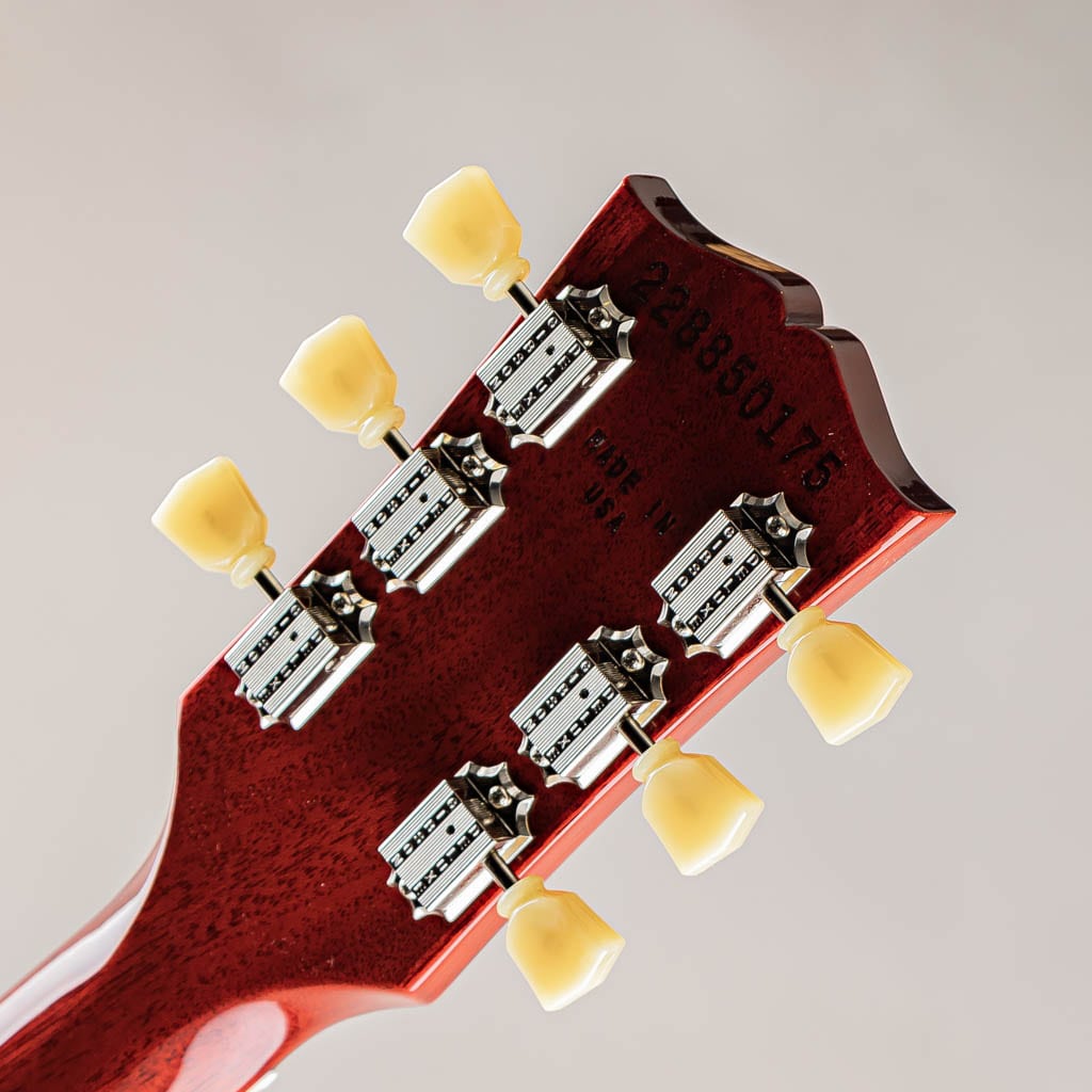 キーストン・ボタン付きのヴィンテージ・デラックス・チューナー、ABR-1ブリッジ、スチール製のサムホイールとテイルピース・スタッドで固定された軽量なアルミニウム素材のストップバー・テイルピースの採用により安定したチューニングを実現。ピックアップにはCalibratedT-Typeハムバッキング・ピックアップを2機搭載。マグネットにはアルニコVが採用されており、豊かなロー・ミッドサウンドに、ハンドワイヤリングされたコントロール・アッセンブリーと組み合わせることにより、プレイヤー達が60年以上もの間愛し続けてきたギブソンESトーンでございます。