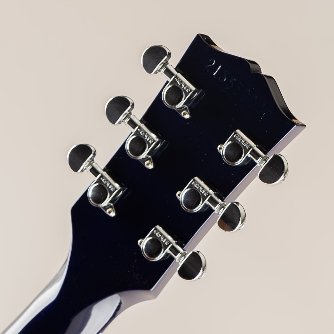 伝統的なデザインながら、ギブソンの新機軸として誕生したSG Modern。マホガニーバックにメイプルトップのボディには往年のSGシェイプ。Blueberry Fadeカラーを引き立てるような揺らめく杢、マザー・オブ・パール・インレイ、グローヴァーチューナー、クリアトップハットノブの採用により、ルックスにおいて豪華な印象を抱かせる仕上がりとなっております。