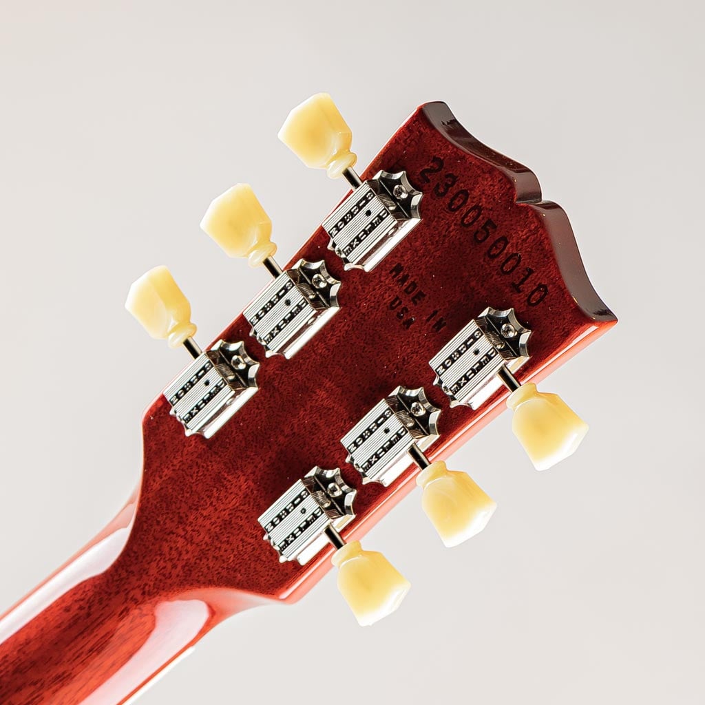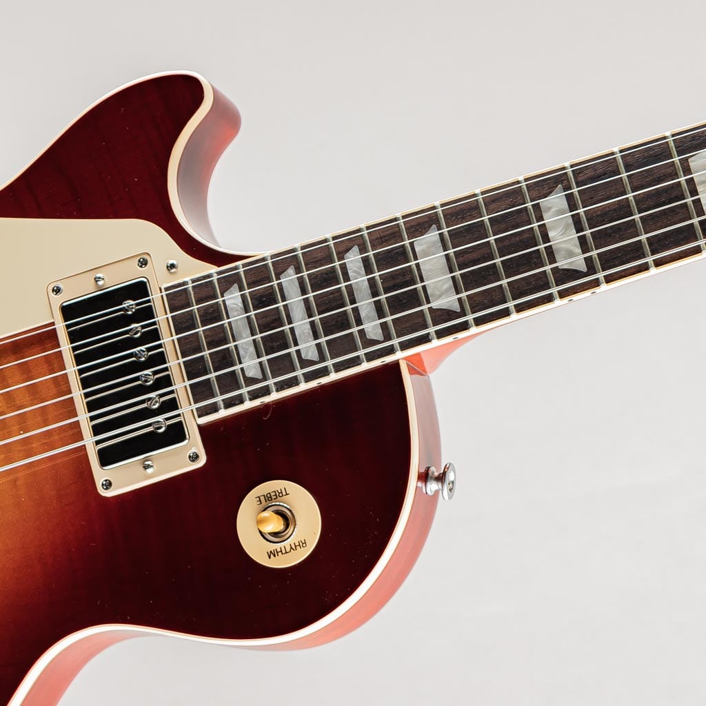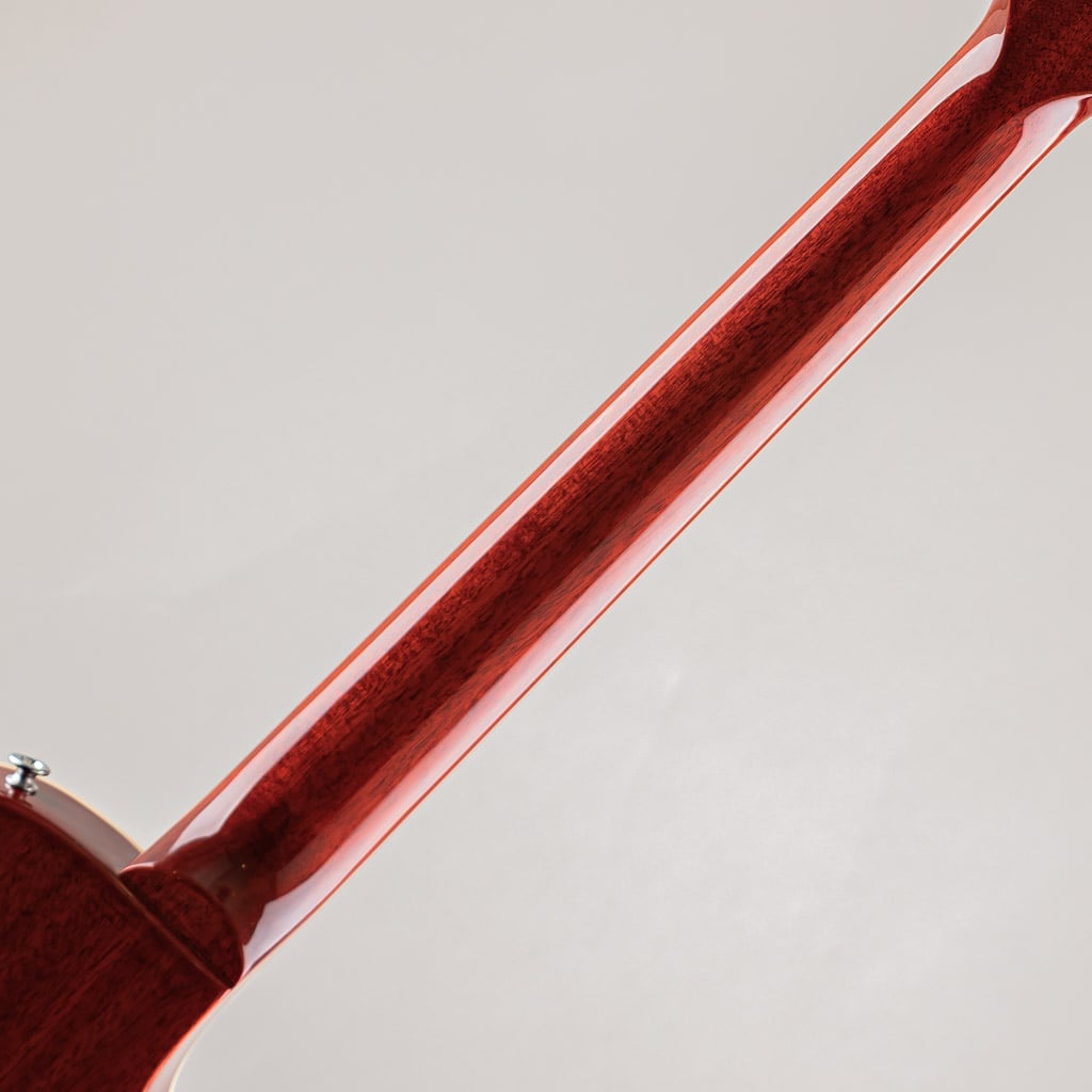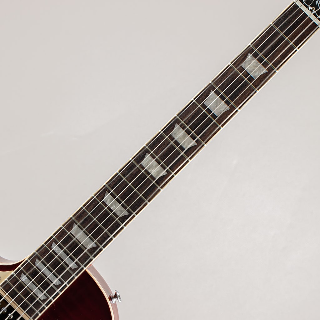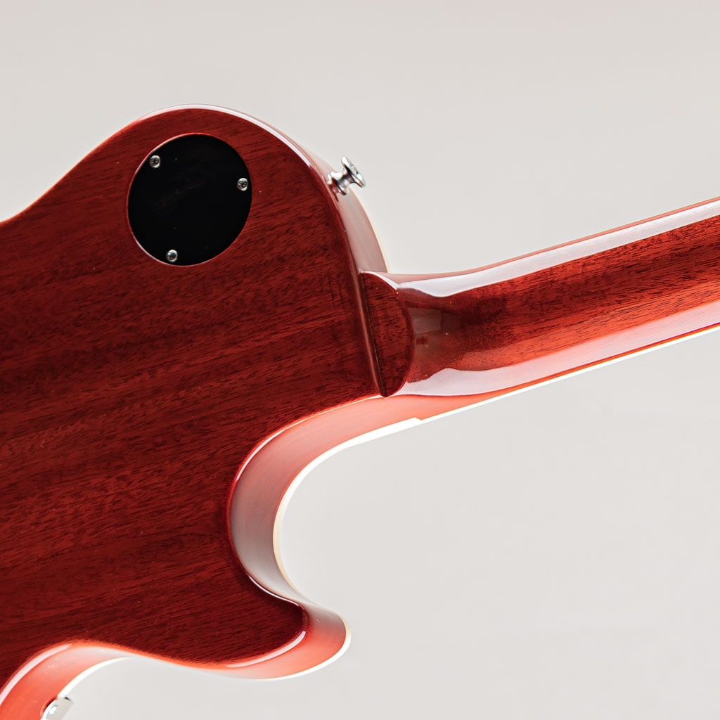 マホガニーボディとメイプルトップのボディ、マホガニーネックにローズ指板のウッドスペック。やや丸みを帯びた肉厚のネックシェイプながら、手に吸い付くようなグリップ感でございますので、ストレスを感じる程の弾きづらさはございません。ピックアップにはBurstbacker1&2が2機搭載。マグネットにアルニコ2を使用し、コイルの巻き数を変えることにより当時のP.A.Fピックアップを再現したピックアップ。低出力のBurstbacker1をフロント側に、Burstbacker2をリア側に配置。フロントではピッキングのニュアンスを利用した繊細なトーンワーク。ブリッジ側ではガッツ溢れるリフプレイをお楽しみ頂けるサウンドクオリティでございます。