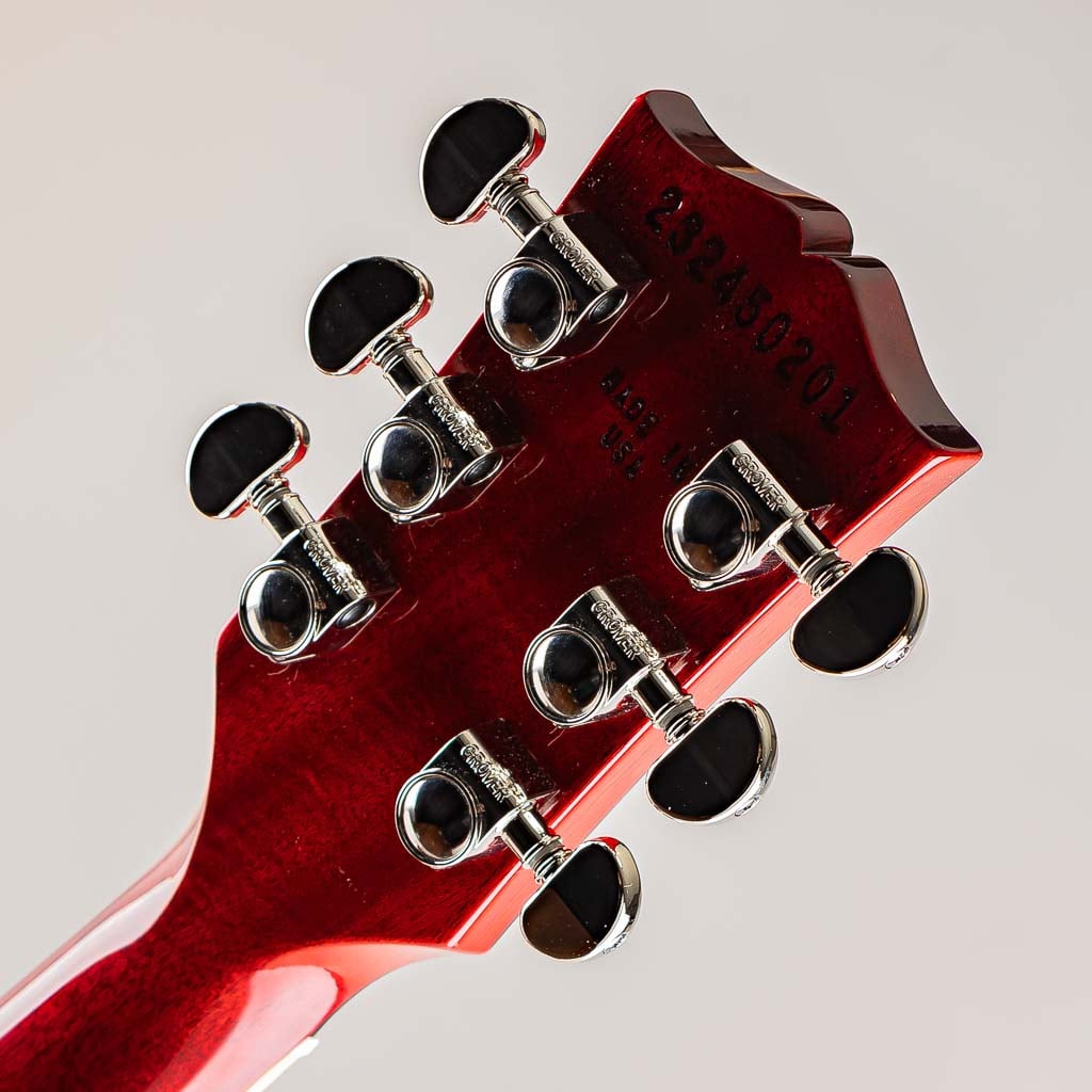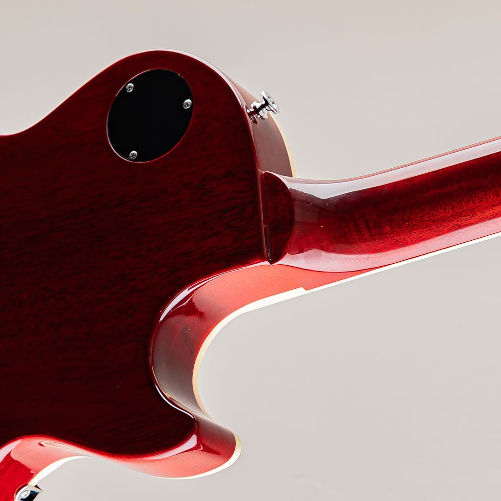 ウッドマテリアルは、ウェイトリリーフ加工を廃したソリッド・マホガニーボディ / AAグレード・フィギュアドメイプル / マホガニーネック / ローズウッド指板にて構成。ネックシェイプには50s系プロファイルより、やや薄めのスリム・テーパーを採用。滑らかに処理された指板サイドエッジやミディアムジャンボフレットもありさらに演奏性を向上されております。その他、ABR-1ブリッジ / Groverペグ / アルミニウム製ストップバー等が搭載されております。