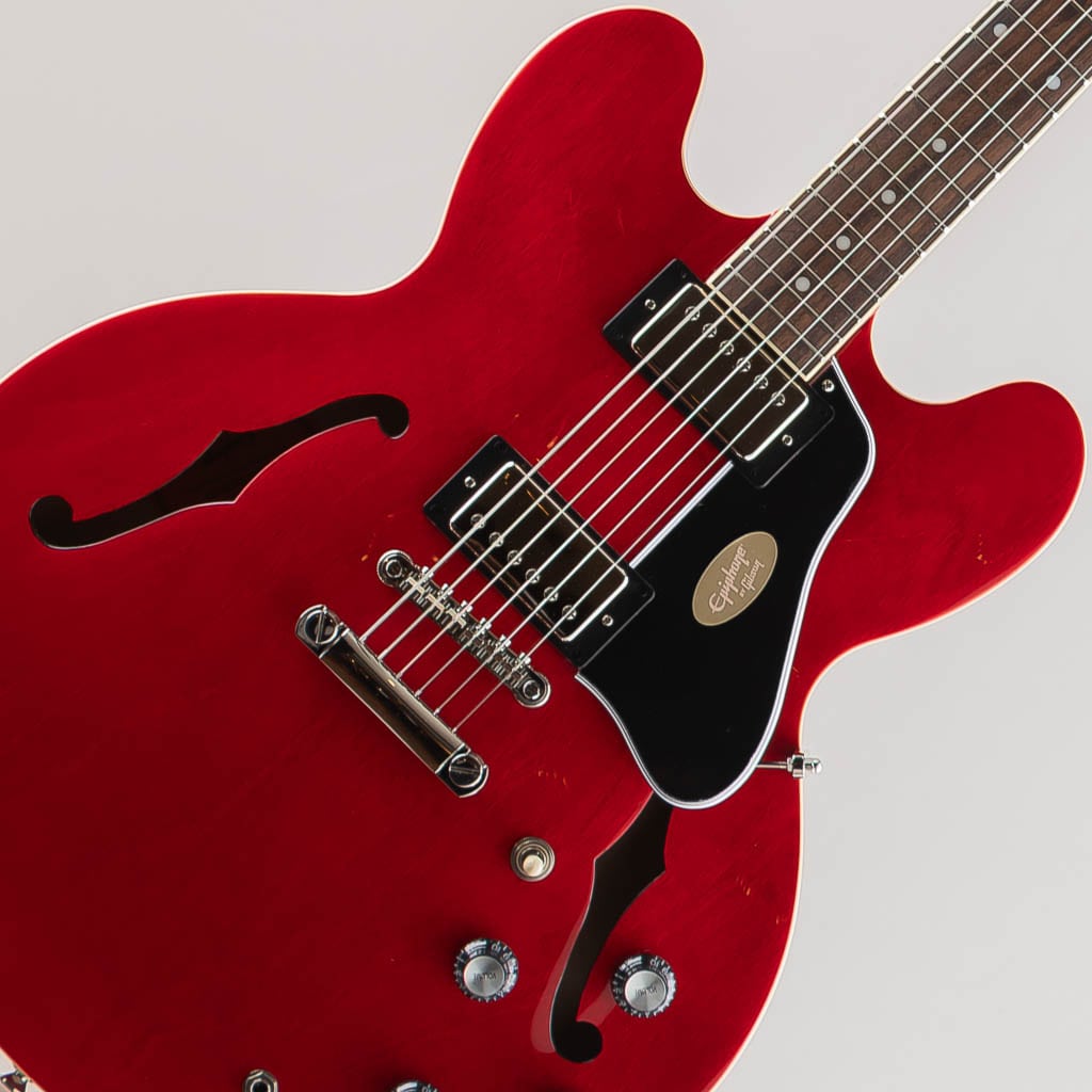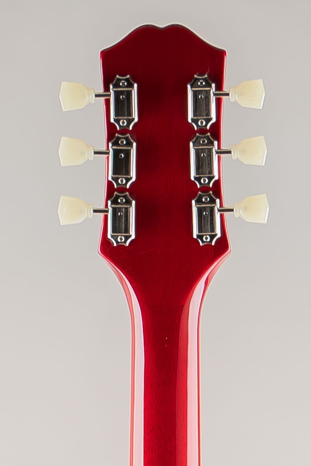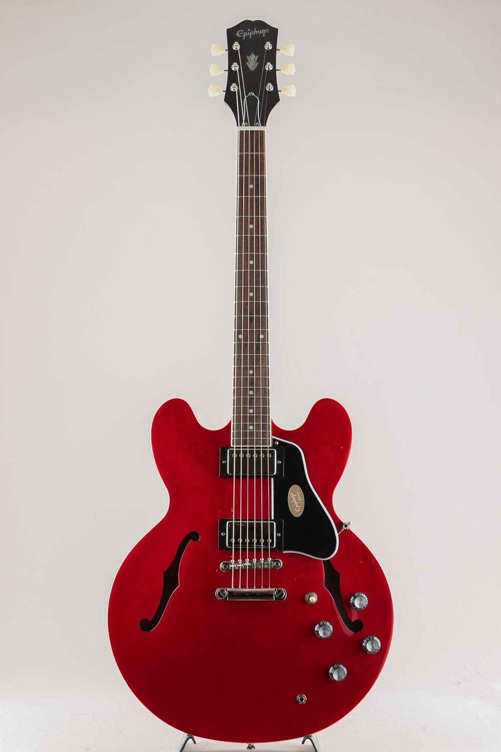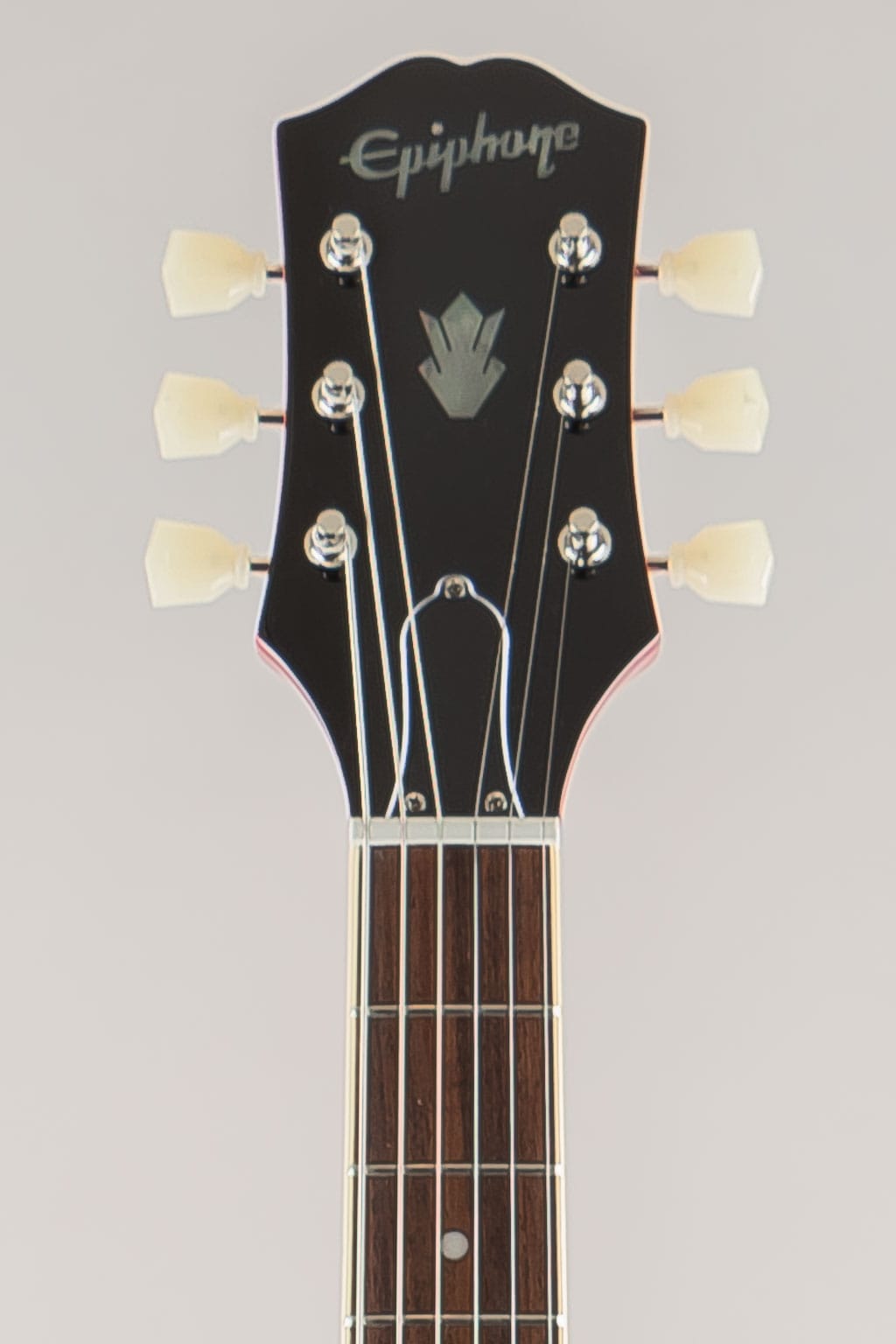 2020年より装い新たに登場したEPIPHONEアーチトップシリーズ。 ネックグリップや細部の仕様、カラーリング等様々な面をリファインし、Gibson USAのモデルに近づいた完成度の高いモデルへと進化を遂げております。 往年の名器、Gibson ES-335の伝統を受け継ぐセミアコースティックモデル。 艶がありながらもハムバッカーによるファットなサウンドは、ロックからジャズまで幅広い音楽シーンで活躍致します。 デザインの美しさから近年では初めての一本に選ばれる方も多く、年齢・性別問わず様々なプレイヤーに愛されているモデルです。 ※画像はサンプルです。本製品の性質上、杢目が1本ごとに異なりますので、予め御了承下さいませ。 SPECS. Body Material: Layered Maple Centerblock: Maple Neck Material: Mahogany Neck Profile: Rounded C Scale Length: 24.724" Fingerboard Radius: 12" Number Of Frets: 22 Frets: Medium Jumbo Nut Material: Graph Tech NuBone Nut Width: 1.693" Inlays: Dot Joint: Glued in; Set Neck Neck Pickup: Alnico Classic PRO Bridge Pickup: Alnico Classic PRO Controls: 2 Volume, 2 Tone, CTS potentiometers, 3-way toggle Hardware: Nickel Bridge: LockTone Tune-O-Matic Tailpiece: LockTone Stop Bar Machine Heads: Epiphone Deluxe Case: Soft Case