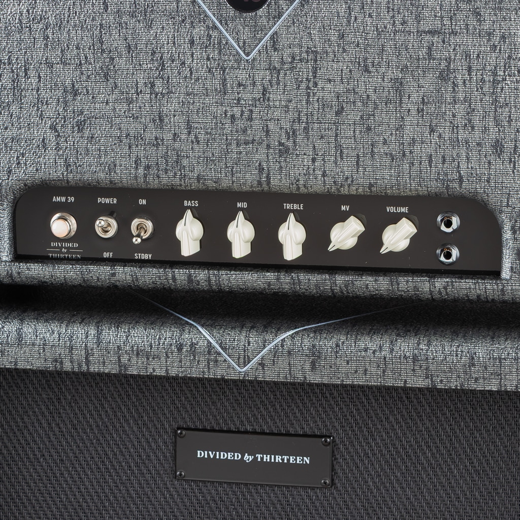 数々のトッププレイヤーを魅了するマジックトーン。ブティックアンプブランドとして確固たる地位を築いたDivided by 13が再上陸! 自身もプレイヤーであり技術者でもあったブランド創設者のフレッド氏の意思を継ぎ新たなスタートを切ったDivided by 13。 ブティックアンプブランドの先駆者として知名度を誇る「Two-Rock」がブランドフォルダーとなり、Divided by 13の生産をTwo-Rock 工場にて一貫して行う形となり、遂に待望の入荷を果たしました。モデルラインナップも一新され、ここ日本でも人気の高かったモデルが引き続きライナップされております。 AMW 39は、以前にラインナップされていたLDW17/39を元にリデザインされたモデルとなります。そのサウンドは60's~80'sに渡り多くの名演を奏でたイギリスメイドのアンプからインスパイアされており、極上のブリティッシュサウンドをアウトします。 そのサウンドは重厚でロックサウンドの王道を行きながらもブティックアンプの持つモダンな響きが交わったネオクラシカルなブリティッシュサウンドとなっており、 ブリティッシュ系の名機は100Wattクラスのフルサイズモデルが殆どですが、このAMW 39は取り回しが良く、丁度よい出力でブレイクアップさせやすく、場所を選ばず使用できるミッドサイズの最上級のサウンドをメイク可能です。 パワー部は2本のEL34管を搭載し39ワットとミッドクラスの出力で非常に扱いやすく、クリーン~クランチからミッドドライブまでアンサンブルでも存在感溢れるサウンドで力強く際立ったサウンドを生み出します。 AMW 39は十分なヘッドルームをもっており、高音量時でも太くコシのあるクリーンサウンドをメイク可能!このクリーンサウンドを土台として、エフェクターメインでサウンドメイキングするプラットフォームアンプとしてもお勧めできるモデルとなっております。 さらに、本モデルのみ搭載となるチューブバッファード・エフェクトループを搭載し、パッシブループで失われがちなクリアさとダイナミクスを維持しつつ、空間系エフェクトのシームレスな接続を可能にします。 非常にダイナミックでキレのあるクリーントーンは心地よく、ノーエフェクトでも表情豊かで温かみあるトーンとなっており、ヴォリュームアップに従ってジリっと程よく毛羽立ち豊かなミドルを持ったクランチ~オーバードライブへと変化、更にアップすれば粘りのあるパンチの効いたフルサチュレーションのドライブをアウトし、ヴィンテージキラーとも言える極上のサウンドを誇ります! 更にマスターボリュームを搭載しており、タッチ感度と音質を損なうことなく適切な音量でサウンドメイクを可能としております。 キャビネットにはRock Blockキャビを選択。ブリティッシュ・フルスタックアンプのような圧倒的な音飛びと鳴り感をコンパクトサイズで実現。 スピーカーユニットはCELESTION G12Mを搭載。ブリティッシュ系アンプにベストマッチするスピーカーです。 これら充実した装備によって幅広いジャンルや演奏環境に対応するだけでなく、そのサウンドは比べようのないほど極上かつ最高峰と言える逸品です。 是非そのサウンドをご体感ください!! Specifications 39 Watts Single Channel Controls: Volume, Treble, Mid, Bass, Master Volumne Preamp: 12AX7 Tube Buffered Effects Loop Power Section: 2 x EL34, 39 Watts, Class AB1 Tube Rectified (5AR4/GZ34) 4, 8, 16 Ohm Output Head: 22W x 11.25H x 8D, 36 Lbs.