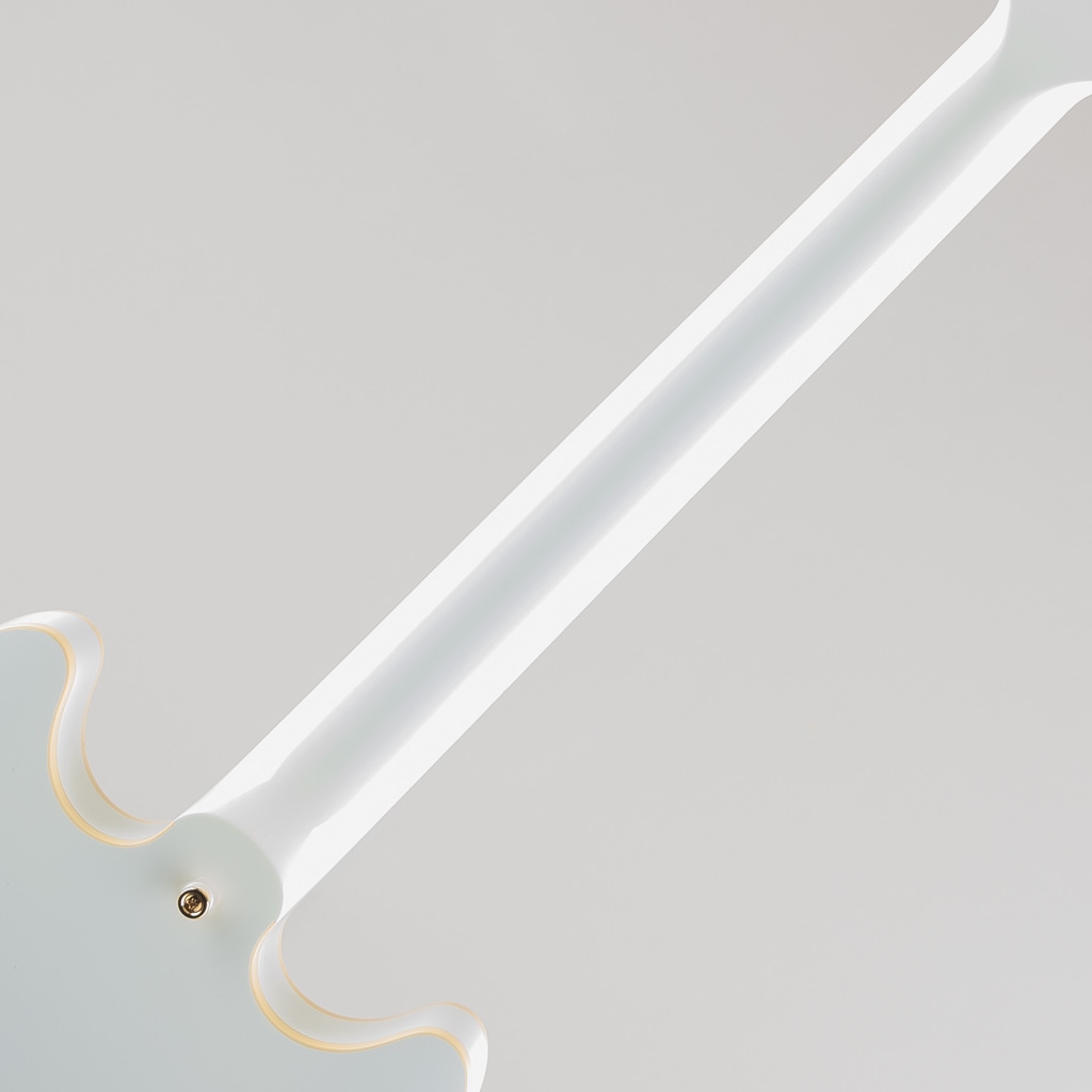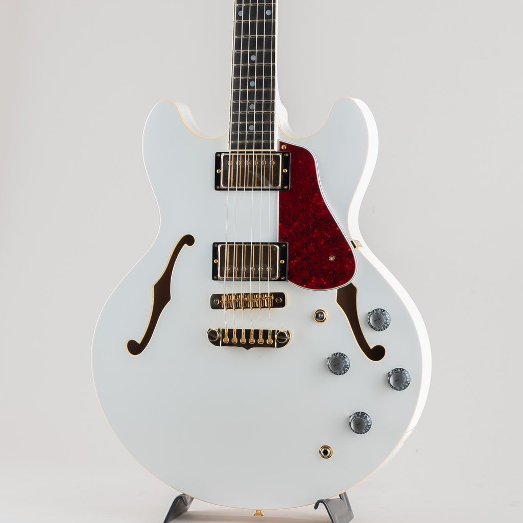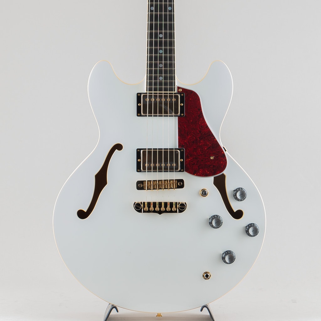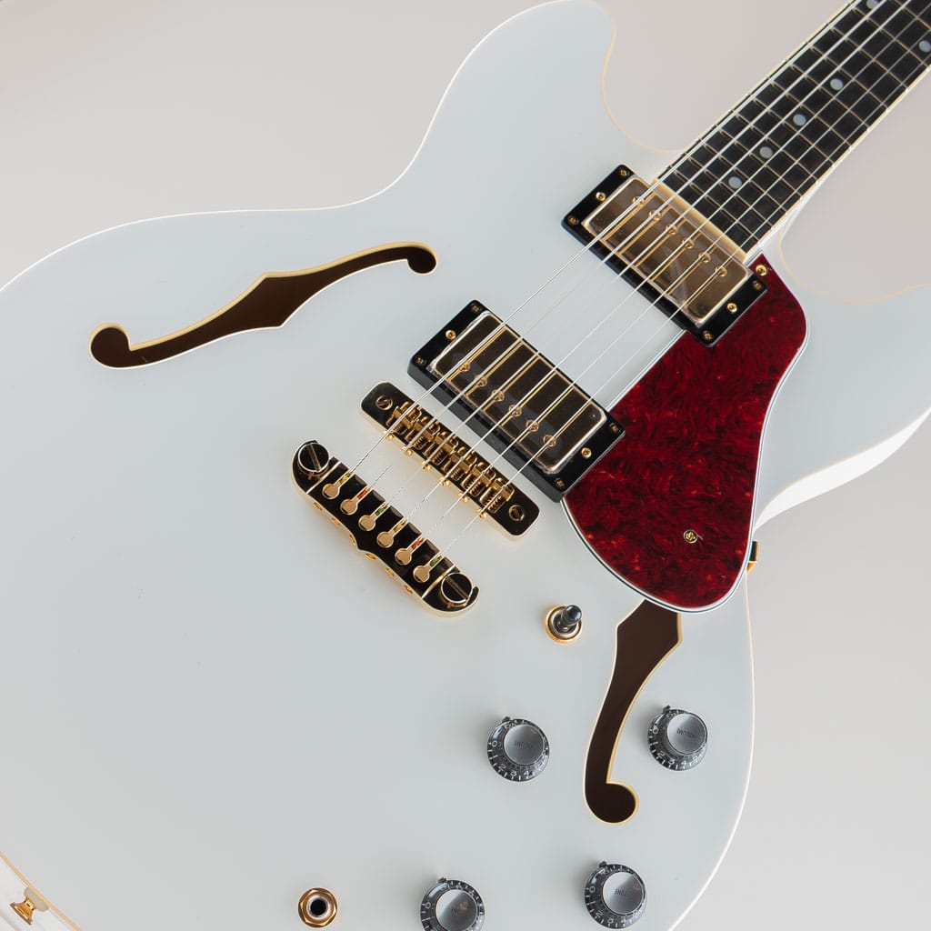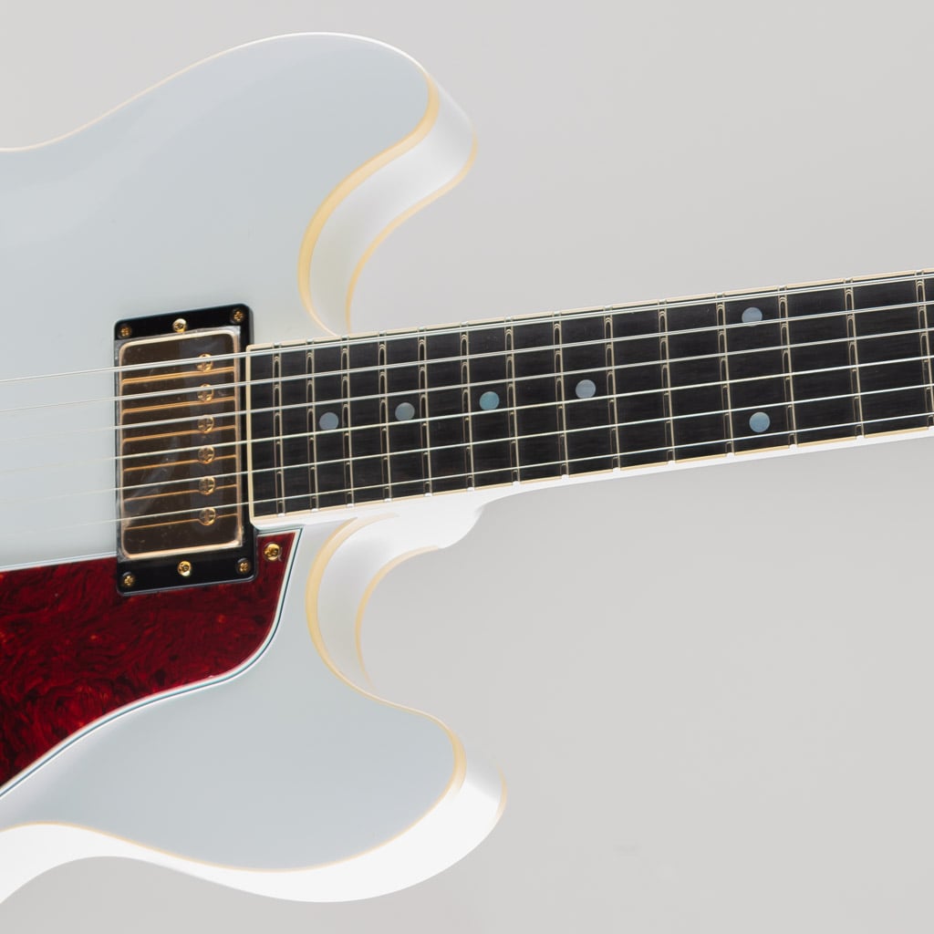 ES-335よりもやや小振りな約15.3インチサイズの取り回しの良いボディ。センターブロックにはマホガニーを採用し暖かみのある中低域と軽量化、そして豊かな生鳴りを生み出しております。ピックアップにはウォームでクリアなトーンとスムースなサスティーンを出力するオリジナルピックアップを搭載。国産ならではの完成度の高さと美しい仕上がりを誇るも、驚きのプライスを実現したおすすめのセミアコースティックです。