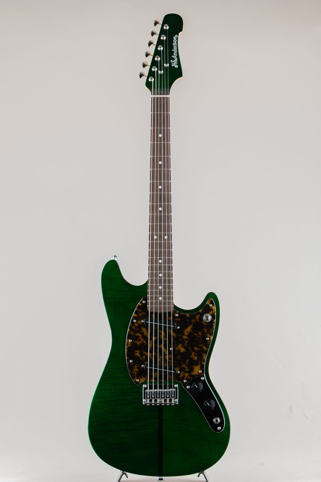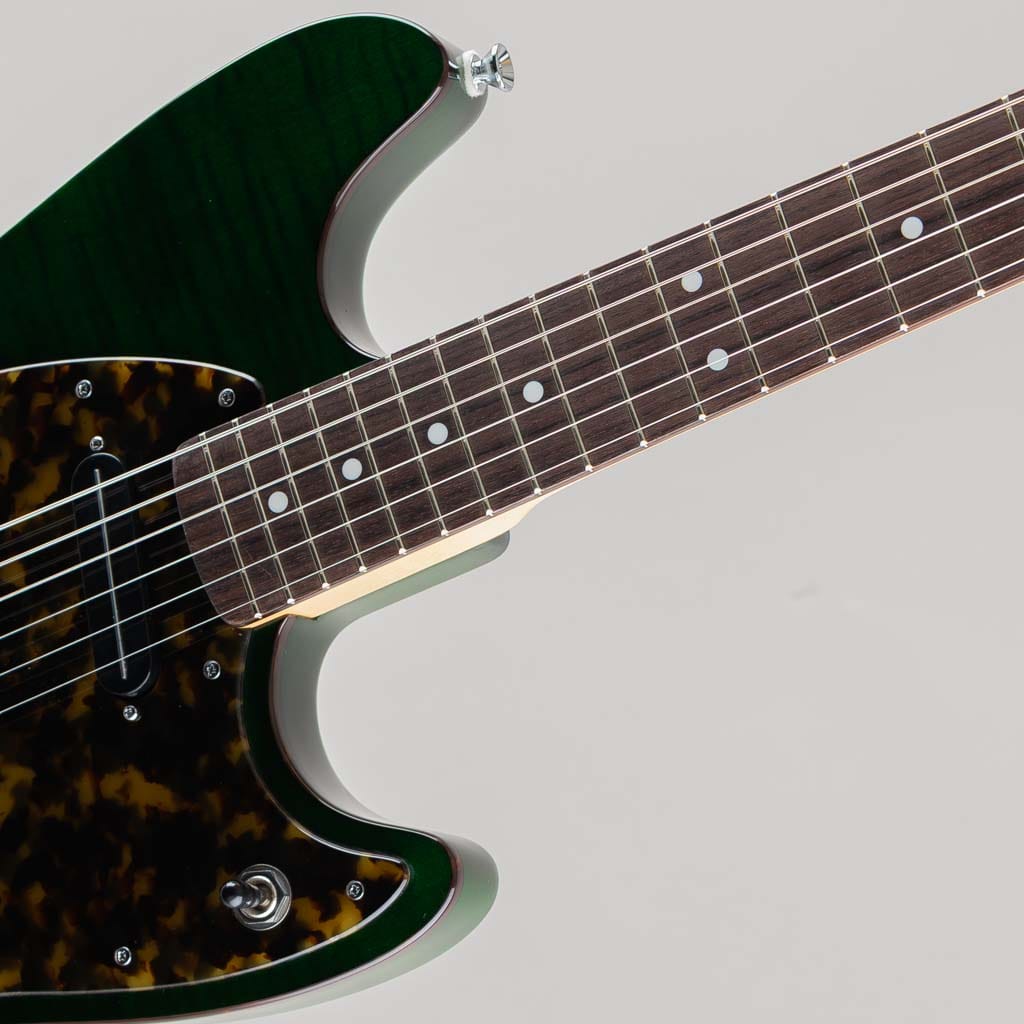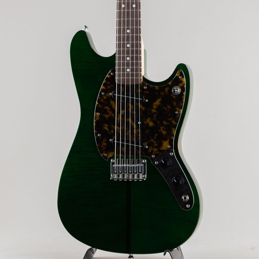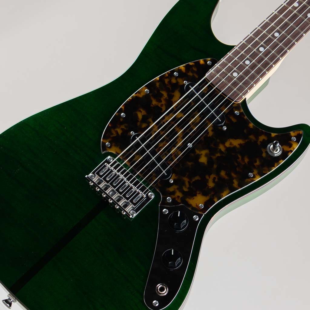 テレキャスターシェイプのHS-1、ストラトシェイプのHS-2に対しムスタングシェイプを採用したHS-3S。HS-1同様のセクシーな印象を引き継ぐも、トラディショナルなスタイルと異なる個性的なスペックを採用しております。ボディは鮮やかな杢のフレイムメイプルトップのアッシュボディ、ピックアップにはBill Lawrence L250を2基マウントしたSSレイアウト。木材特性から生まれるそのトーンは明るく締りのある艶やかな質感で、タイトなレスポンスはドライブしても損なう事なくファットなサウンドを出力します。またサウンドのみならず、良質なウッドマテリアルや細部にわたる仕上がりの良さは国産ならではの完成度の高さで演奏性も非常に優れております。