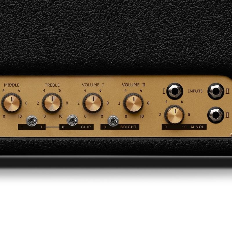 1959HW(ハンドワイヤード)の基板を基にマスターボリューム、クリッピングオプション、ブライトスイッチが搭載されました。マスターボリュームが追加されたことによって⾳量のコントロールが容易になった上、チャンネルボリュームのみで歪み易くなっています。またチャンネル I と II をリンクして 2 つのプリアンプを同時に鳴らすことも可能です。