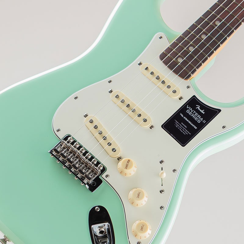 Vintera II 70s Stratocasterは、アルダーボディとメイプルまたはローズウッド指板のメイプルネックを採用し、パンチと透明感に溢れたクラシックなフェンダートーンを実現します。"U"シェイプネックは、70年代モデルのネックプロファイルを元に設計されており、快適な演奏性を提供します。7.25インチラジアス指板とヴィンテージトールフレットにより、大胆なベンディングや繊細なビブラートが可能で、ヴィンテージの快適さが得られます。3基のヴィンテージスタイル'70sピックアップは、煌びやかさと温かみのあるクラシックなフェンダーサウンドを提供します。ヴィンテージスタイルのシンクロナイズドトレモロにより表情豊かなアーミングが可能で、ヴィンテージスタイルの"F"刻印入りチューニングマシンは、クラシックなルックスに加え、より細かいギア比とチューニングの安定性を向上させます。