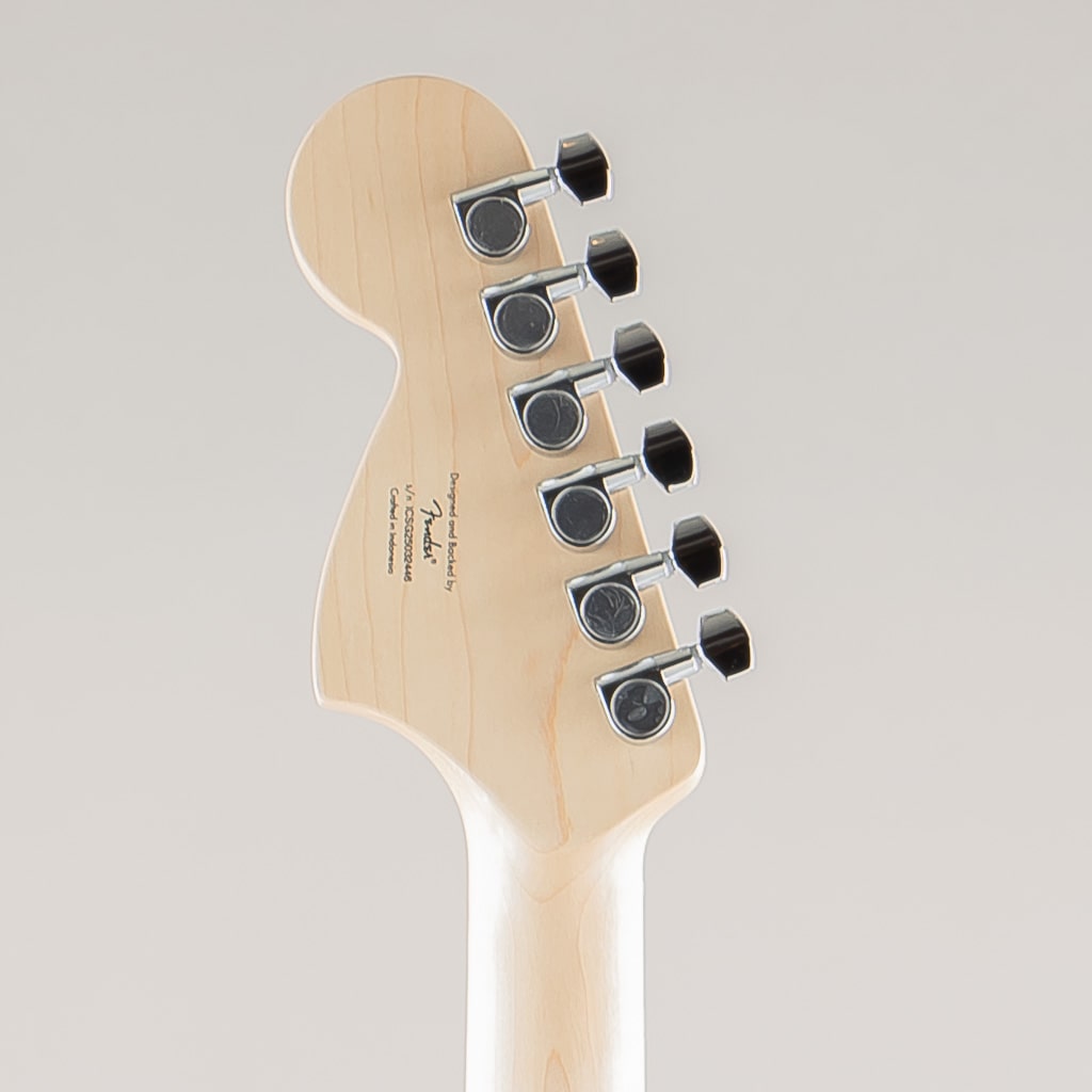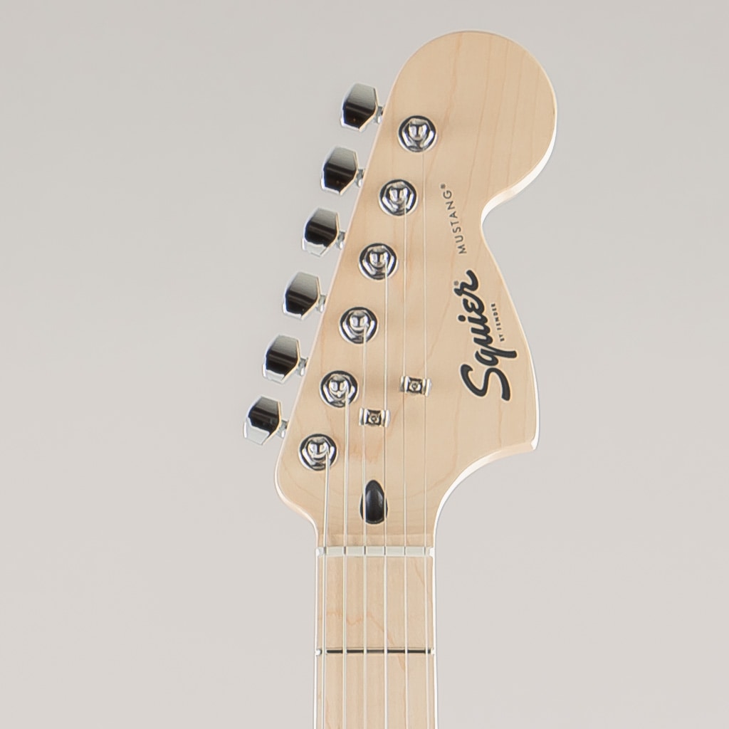 この Mustangは、薄く軽量なボディに、スリムで魅力的な「C」シェイプネックが相まって、快適な演奏性をもたらします。2基の Squier シングルコイルピックアップはクリスタルのようにクリアで多彩なトーンを奏でます。