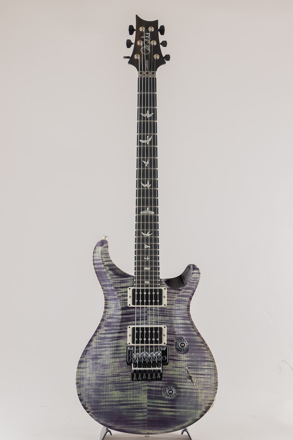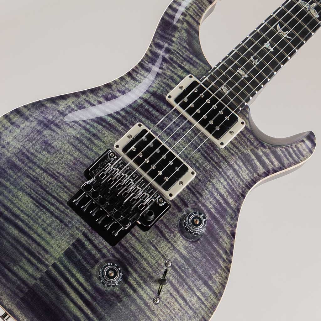 PRSコア・モデルの Custom 24 “Floyd”は、定評あるFloyd Rose “Original”トレモロ・システムと、PRS m/(メタル)ピックアップ(カバーレス)を装備。Floyd Rose “Original”トレモロ&ロッキング・ナット・システムは、高品位スティールから製作された精巧なダブル・ロック仕様です。弦をナットとブリッジの2カ所でロックし、たとえダイブボムを連発させてもチューニングはジャストそのもの。