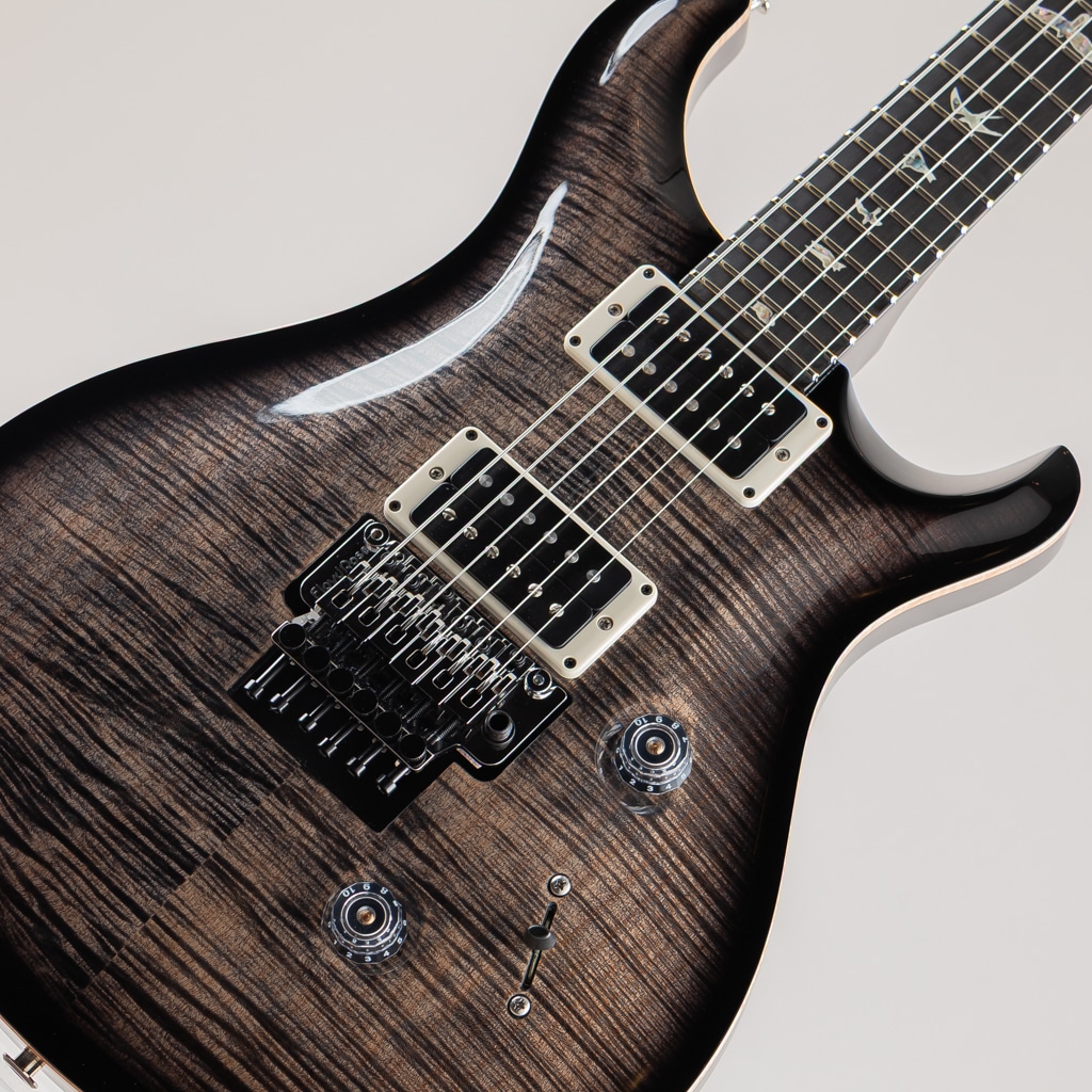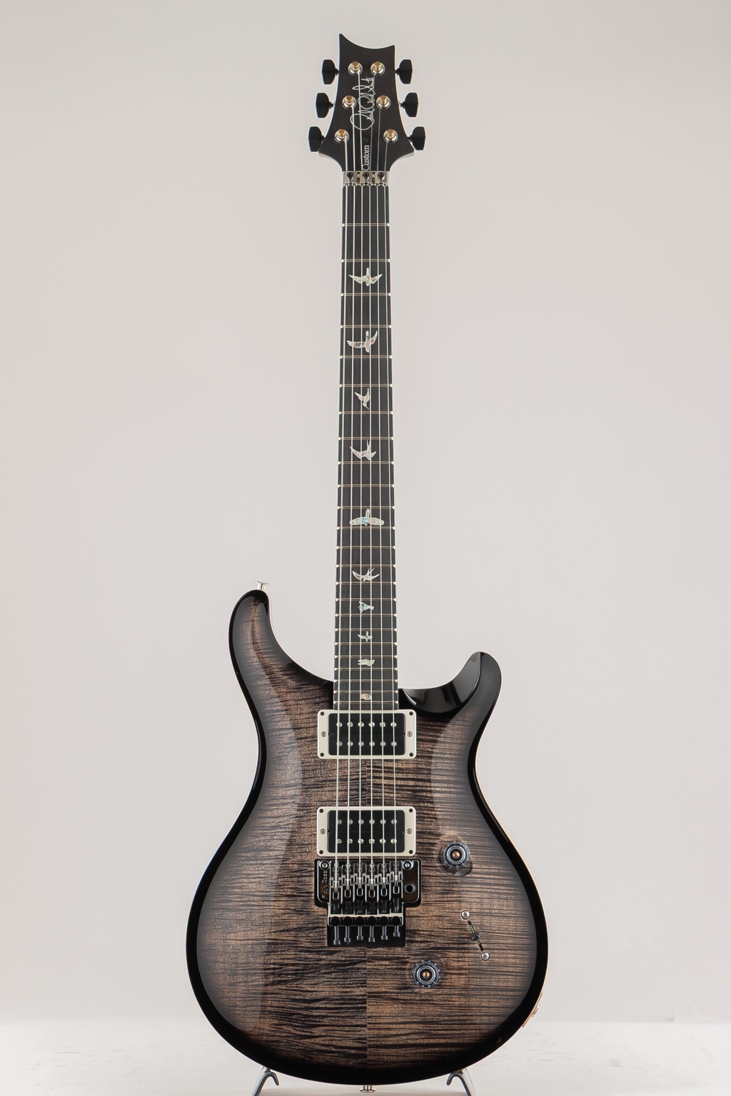PRSコア・モデルの Custom 24 “Floyd”は、定評あるFloyd Rose “Original”トレモロ・システムと、PRS m/(メタル)ピックアップ(カバーレス)を装備。Floyd Rose “Original”トレモロ&ロッキング・ナット・システムは、高品位スティールから製作された精巧なダブル・ロック仕様です。弦をナットとブリッジの2カ所でロックし、たとえダイブボムを連発させてもチューニングはジャストそのもの。