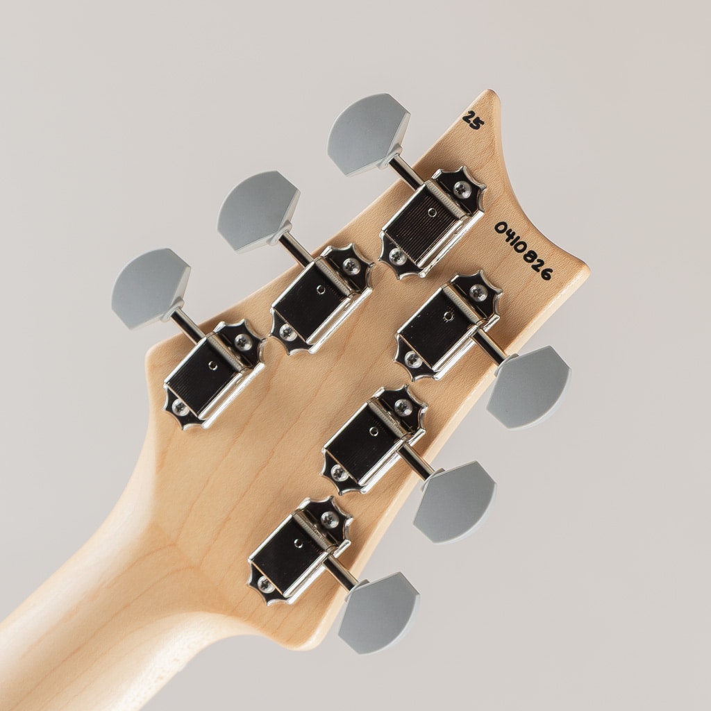 ヘッドはPRS独自のデザインに基づく形状ながら、John Mayerの演奏スタイルを考えナットからペグポストの距離を確保し、さらにはペグの配置をオフセットにする事により更なるチューニングの安定性・最適なテンション感を獲得しています。
