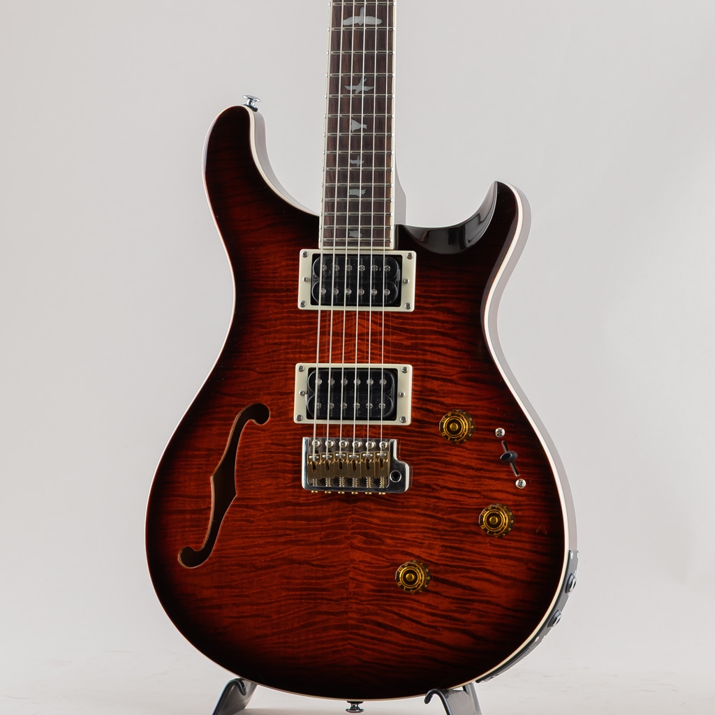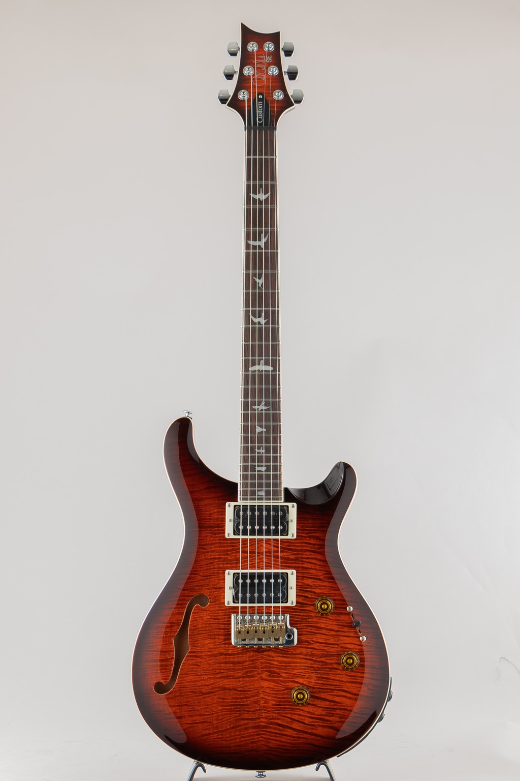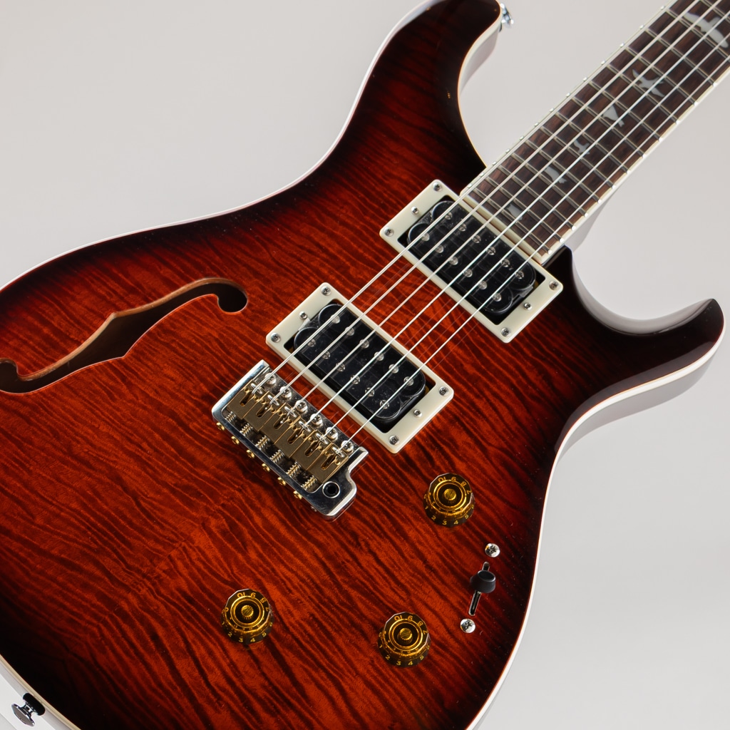マッチングヘッドやヘッドストックと指板のバインディング、そしてランプシェード・ノブが織りなす洗練されたテデザインが優れたプレイやビリティと融合し、多彩なサウンドメイキングを可能にしたPRS SE Custom 24 Semi-Hollow Piezoは、ギタリストの幅広いニーズに応えることができるモデルです。