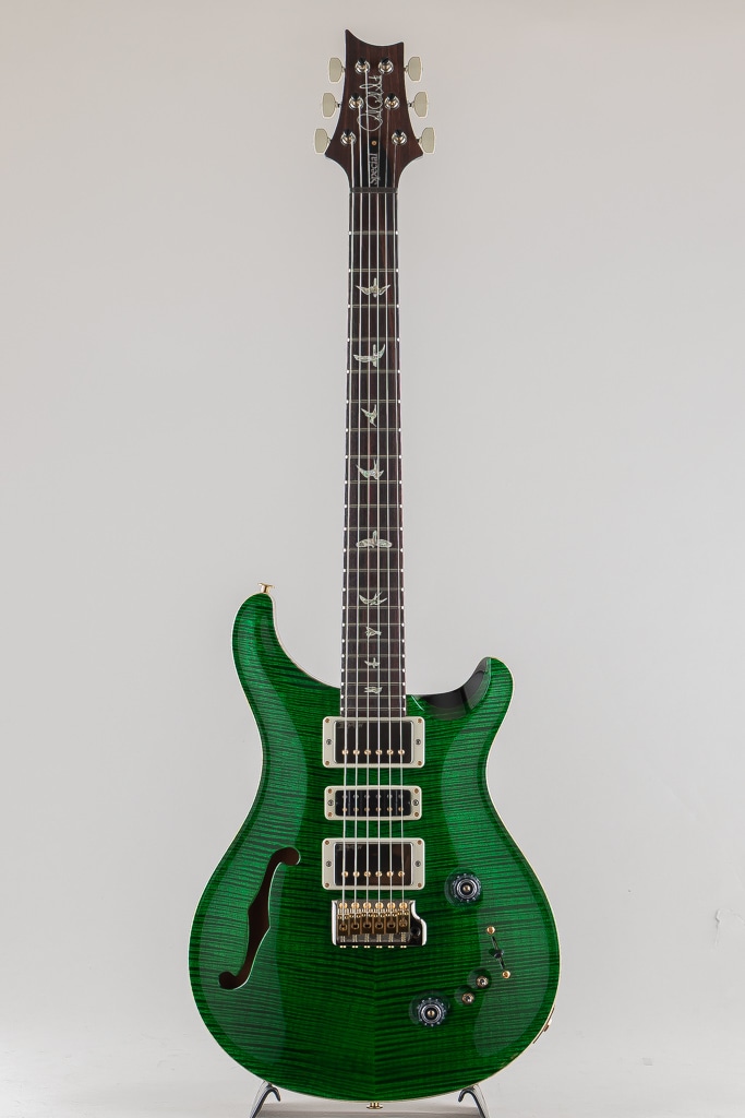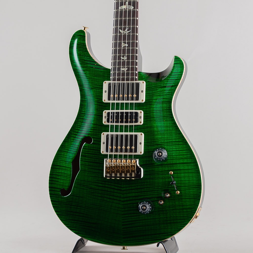 その他のスペックとしては、メイプル・トップ、マホガニー・バック、22フレット & 25インチ・スケールのマホガニー・ネック、ローズウッド指板を採用し、Phase IIIロッキング・チューナーとPRSオリジナル・デザインのGen IIIトレモロ・ユニットを搭載。ハムバッカーとシングル・コイルの音量差を抑えつつ、fホールを持つセミ・ホロウ・ボディ構造は、ギターのトーンに心地良い空気感と深みを与えます。