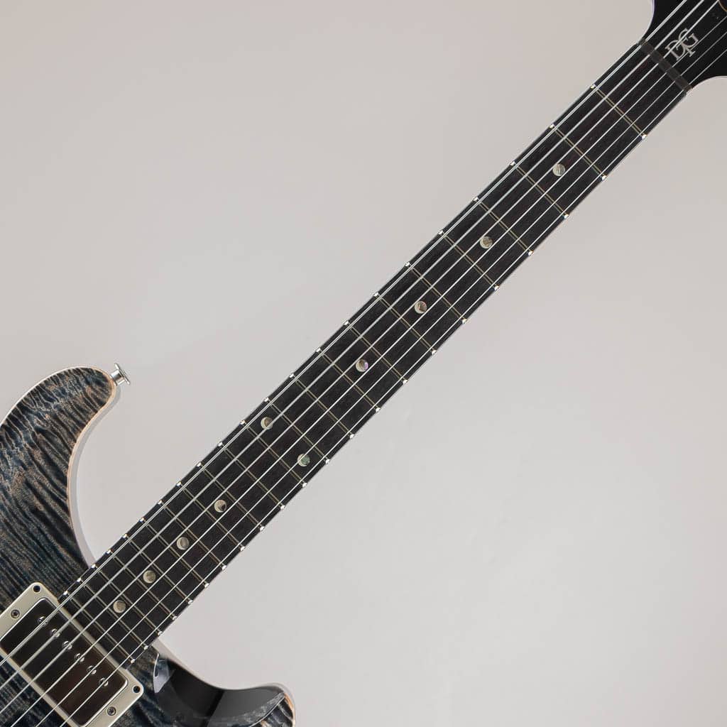 限定販売品と比較しますと、ボディトップウッドのグレードがアーティストグレードではなく10Top、トレモロブリッジがGenIIではなくGenIII、通常のハードケース、ポールリードスミス氏のハンドサインのないヘッドロゴ、ディヴィッド・グリッソム氏のハンドサインのないバックプレートなど、リミテッドモデルの恩恵こそございませんが、10Topグレードとは思えないびっしり詰まった杢目とDGTのレギュラーカラーではないFaded Whale Blueを採用し、通常のDGTモデルとは一味違う雰囲気を醸し出しております。