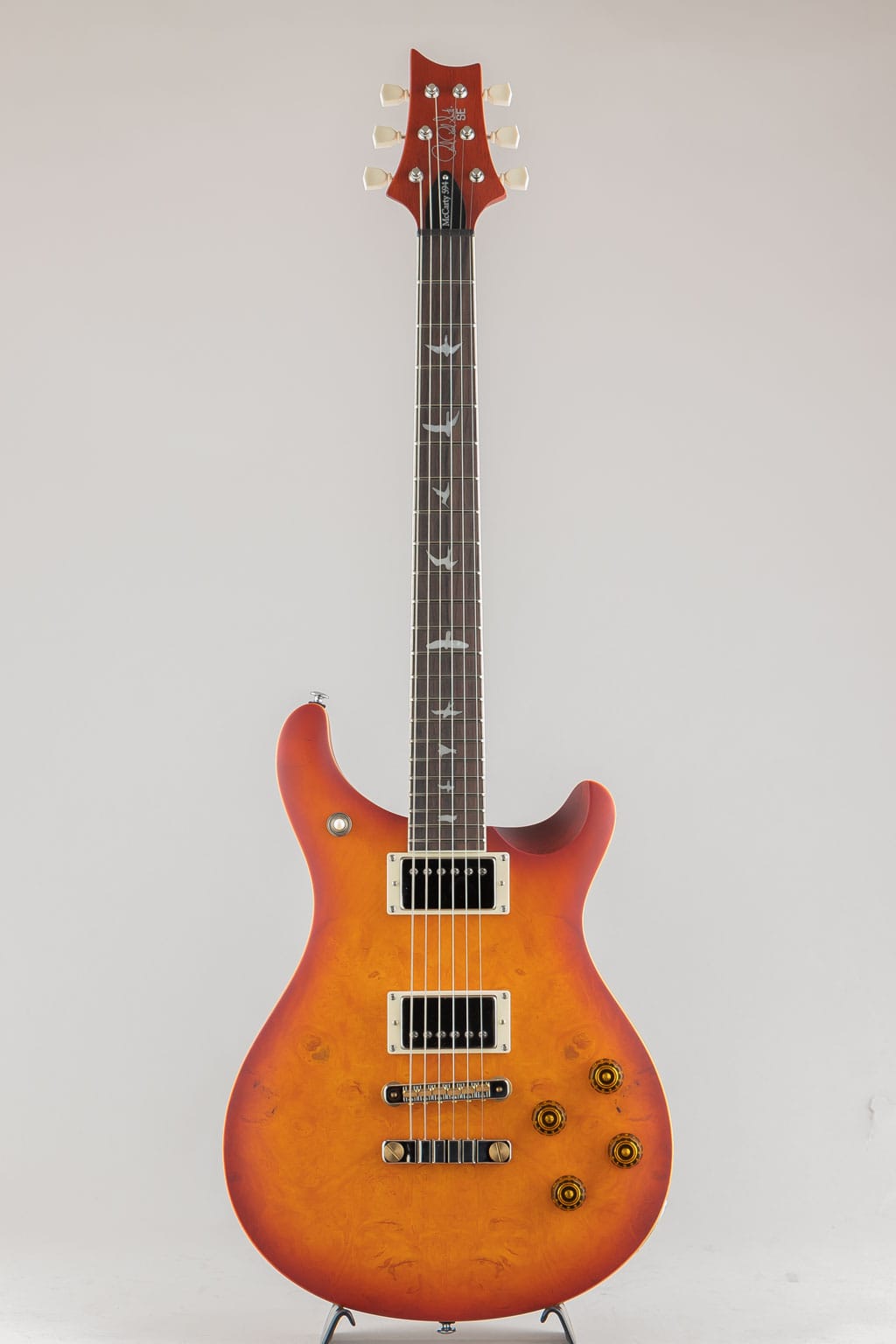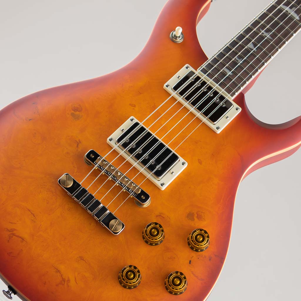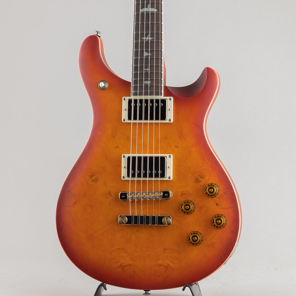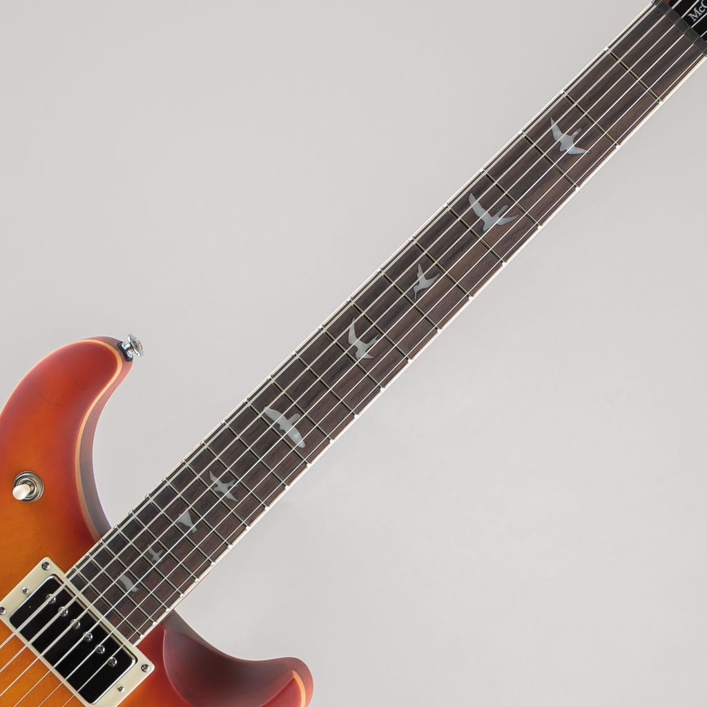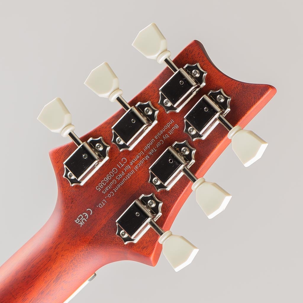 本モデルの2ピース・ブリッジとヴィンテージ・チューナーは高いチューニングの安定度を誇り、マホガニー・バック、メイプル・トップは、深みがありつつも明瞭なサウンド・レスポンスと豊かなサステインを生み出します。また、緻密な解析によって導き出されたパターン・ヴィンテージ・シェイプのマホガニー・ネックは、バード・インレイが施されたローズウッド指板と組み合わさることにより、洗練されたプレイヤビリティを実現。PRSの主軸モデルよりも僅かに短い24.594インチ・スケールは、本モデルから感じ取れるヴィンテージ・テイストの大きな要因のひとつとなっています。
