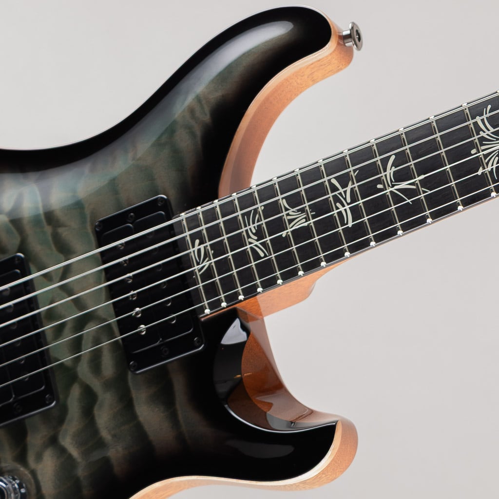 Custom 24-08をベースに、キルトメイプル・トップ、ブラッシュストローク・インレイが施されたエボニー指板、スモーク・ブラック・ハードウェアを採用。トラスロッドカバーにはBAND-MAIDのロゴがデザインされるなど、特別な仕様に仕上げられています。
