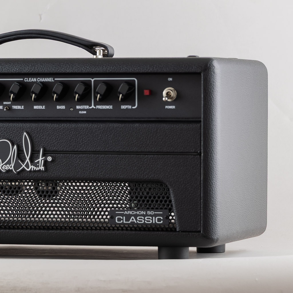 PRS Archon Classic は、上質かつパワフルなクラシック・ロック・トーンを求めるプレイヤーのために開発された2チャンネル仕様のアンプです。オリジナルのArchonからアップデートされたドライブ回路により、本モデルのリード・チャンネル では、中音域において幅広い歪みの質感を実現しました。そして、クリーン・チャンネルでは、原音に忠実なサウンドから、ブレイク・アップした時のエッジの効いたサウンドまで、スムーズに切り替えることができます。本モデルの立体的なトーンは、伸びのある高音域とタイトな低音域を持ちつつ、同時にひとつひとつのサウンドの繊細な分離感と高い明瞭度を誇ります。