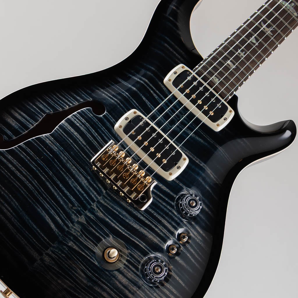 本モデルには10-Topグレードのフィギュアド・メイプル・トップ、マホガニー・バック&ネック、ジリコテ指板を使用し、全てPRS独自の木材乾燥プロセスを経て、環境の変化に強く安定したネックと、弦振動を最大限に活かすボディとなっています。さらに、Fホールを兼ね備えたセミホロウ構造を採用することで、エレガントなルックスに加え、深みと奥行きのある上質なトーンを生み出します。