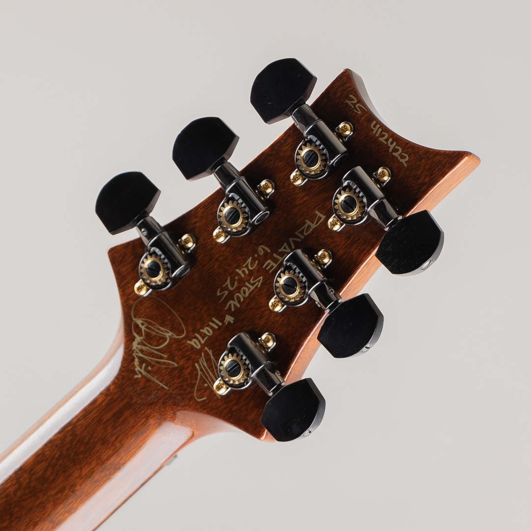 年々ハイグレードな材の確保が難しくなる中、コアモデルでは採用することの難しいプライベートストックならではの最高峰のマテリアル惜しみなく使用し、PRSファクトリー内で選び抜かれた職人の手により製作された本器は、弊社スタッフがポール氏秘蔵の "Paul's Stash”より選定した極上のメイプルトップ & 現地選定した極上のトーンウッドを用いオーダーを行った"Custom 24" をベースに製作された渾身の1本!