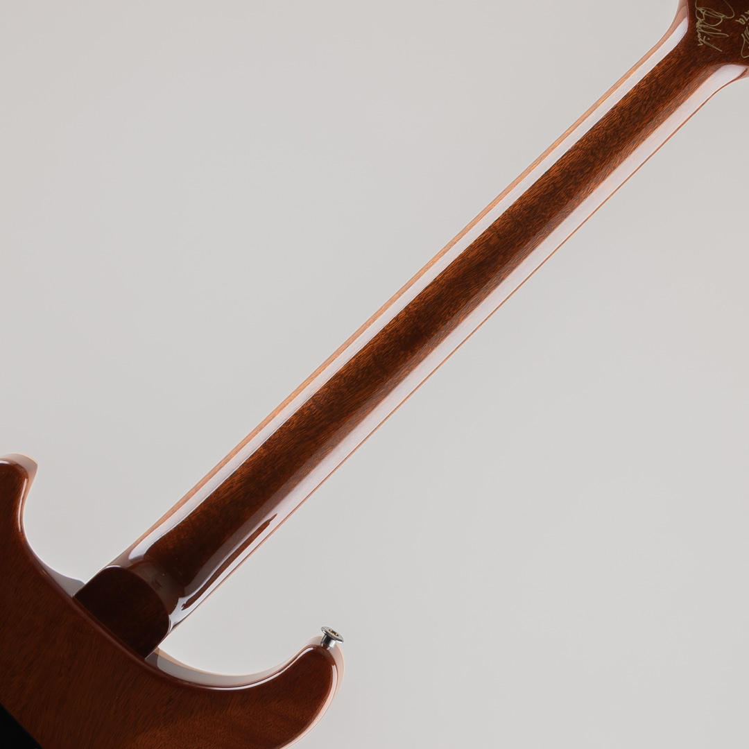 バックウッドは杢目の浮かぶワンピース "African Mahogany" を採用しネック部は深みのある色味をもつ "Mahogany" に 黒々とした "Ebony" フィンガーボードのコンビネーション。