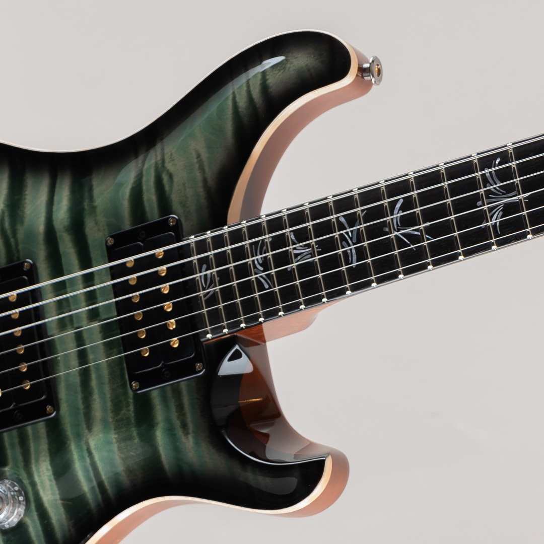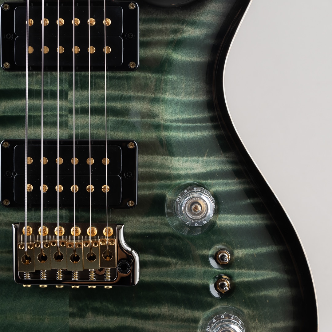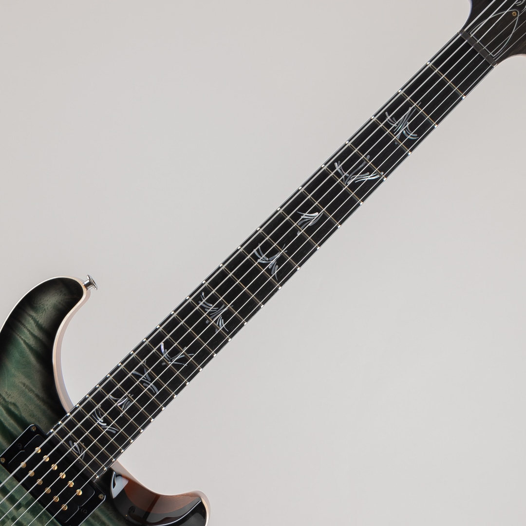 Hardware: Smoked Black | Gold Gen IlI tremolo bridge, PRS Phase III screw locking tuning pegs with Ebony buttons, and an Ebony truss rod cover with White Mother of Pearl purfling Set-Up: PRS Signature. 010
