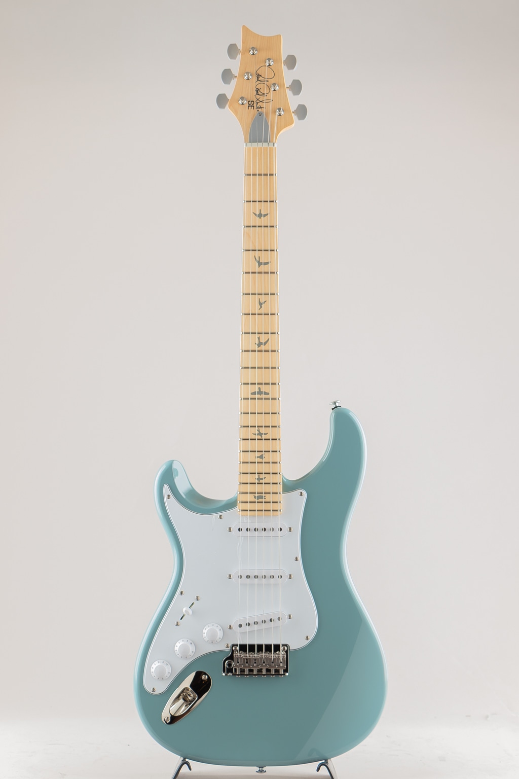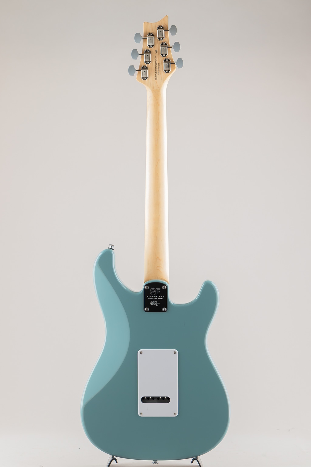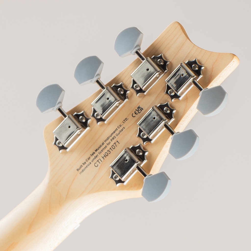 今回新たに4つのカラーが加わった本モデルでは、ポプラ・ボディにボルトオン・メイプル・ネック、PRSの代名詞でもあるバードインレイを施したローズウッド指板、22フレット、8.5インチ・ラディアス、そしてオリジナルの635Mシェイプをベースとした25.5インチ・スケールのネックを採用。ピックアップにはUS製Silver Sky同様、芯のある音楽的なサウンドを生み出す635JM “S”を搭載。2点支持のスチール製トレモロ、ボーン・ナット、ヴィンテージ・チューナーは高いチューニングの安定を実現し、従来のPRSのシェイプから左右を反転させたヘッドストック・デザインと、その前面からアクセス可能なPRSオリジナルのダブルアクション・トラス・ロッドも、SE Silver Skyの大きな特徴となっています。