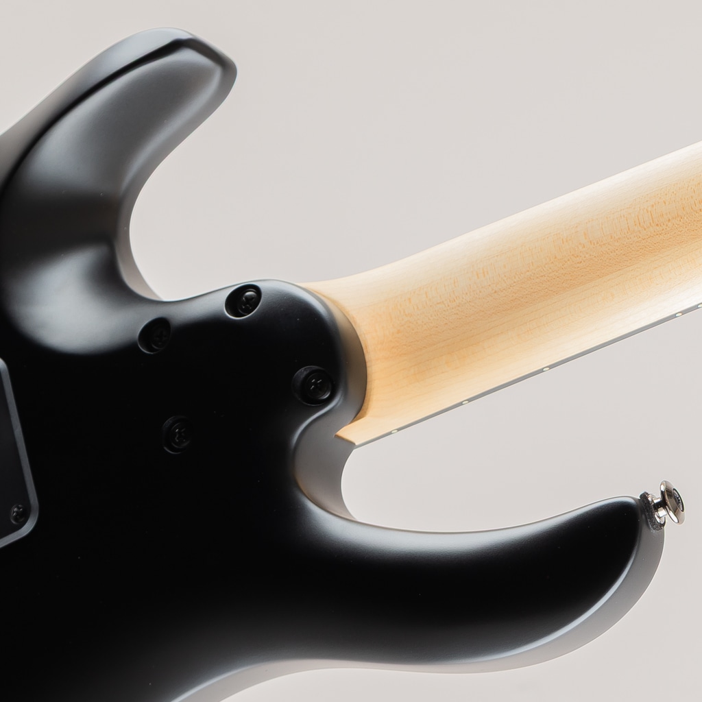 本モデルはメイプル・トップ&マホガニー・バックのボディに、メイプル・ネック&エボニー指板を採用。立体的なカーブ加工が施された極薄・軽量ボディにより、長時間の演奏でも快適なプレイアビリティを実現。ネックシェイプとジョイント構造は本モデル専用に設計され、極薄のネックは、幅を少し広く設けることによって強度を確保しつつ20インチ・ラディアスの指板面がストレスのない、スムーズかつスピーディな演奏を可能にしました。また、ネック内部にはカーボン・ファイバーのロッドを内蔵し、高い剛性とサスティンを生み出しています。