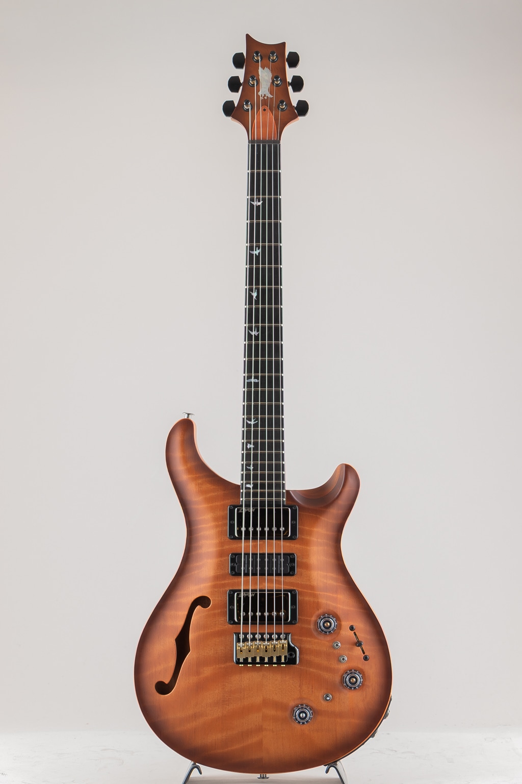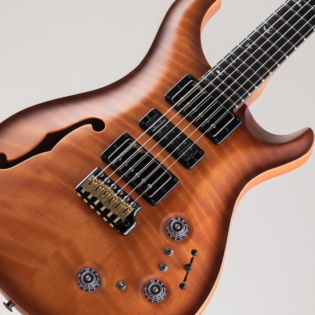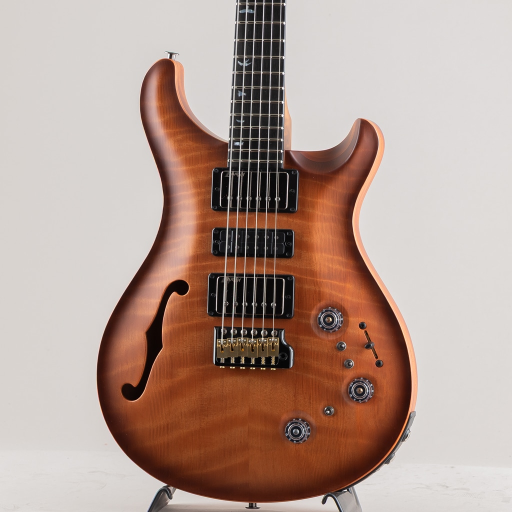 年々ハイグレードな材の確保が難しくなる中、コアモデルでは採用することの難しいプライベートストックならではの最高峰のマテリアルを惜しみなく使用し、PRSファクトリー内で選び抜かれた職人の手により製作された本機は、Special Semi-hollowのスペックを基に弊社スタッフが現地選定した極上のトーンウッドを贅沢に使用し製作された1本でございます。