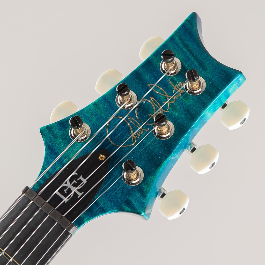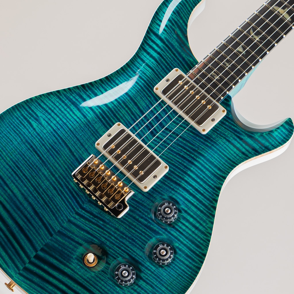 今回入荷のモデルは "DGT" をベースに "Wood Library" ならではの独自のスペックや厳選されたウッドマテリアルを惜しみなく用いた、特別な1本となっており "Artist Grade" の "Flame Maple" をトップ材に配し、バック材は "White Color" 仕上げの "Mahogany" を採用。