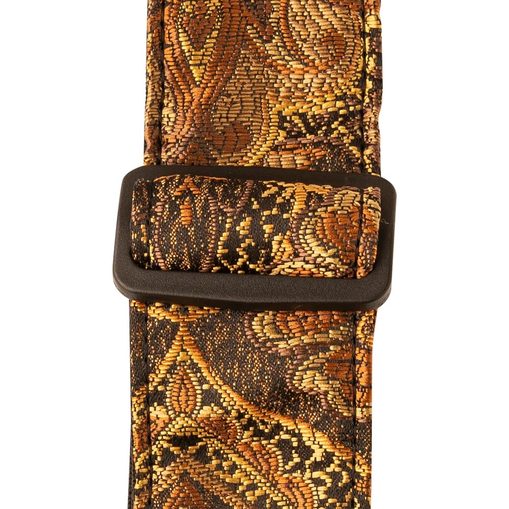 ナイロン裏地のPRSペイズリーストラップは、ブラックとブラウンの2色展開です。ケースカバーと同じ素材を使用し、滑らかなナイロン裏地が施されています。ストラップ幅は2インチ、長さは60インチまで伸びます。