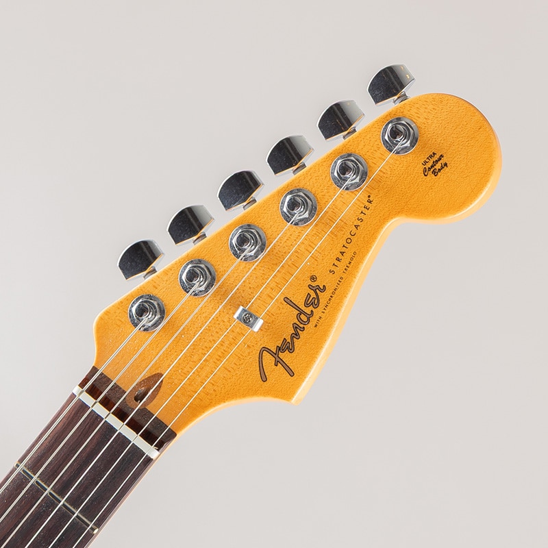 ピックアップにはPure Vintage ’61 Stratを搭載し、クリアで煌びやかなクリーントーンから、豊かで表現力あふれるリードトーンまで、クラシックなフェンダーサウンドを奏でます。ハードウェアには、コールドロールドスチールブロックとポリッシュフィニッシュのステンレススチールブロックサドルをフィーチャーした2点支持American Ultraシンクロナイズドトレモロ、素早い弦交換と優れたチューニング安定性を誇るデラックスロッキングチューナーを装備し、高い演奏性を提供します。