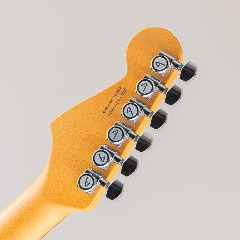 ハードウェアには、コールドロールドスチールブロックとポリッシュフィニッシュのステンレススチールブロックサドルをフィーチャーした2点支持American Ultraシンクロナイズドトレモロを採用。