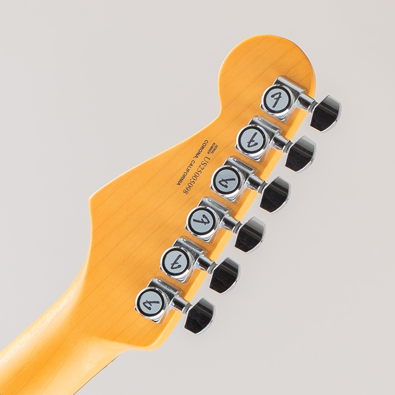 ハードウェアには、コールドロールドスチールブロックとポリッシュフィニッシュのステンレススチールブロックサドルをフィーチャーした2点支持American Ultraシンクロナイズドトレモロ、素早い弦交換と優れたチューニング安定性を誇るデラックスロッキングチューナーを装備し、高い演奏性を提供します。