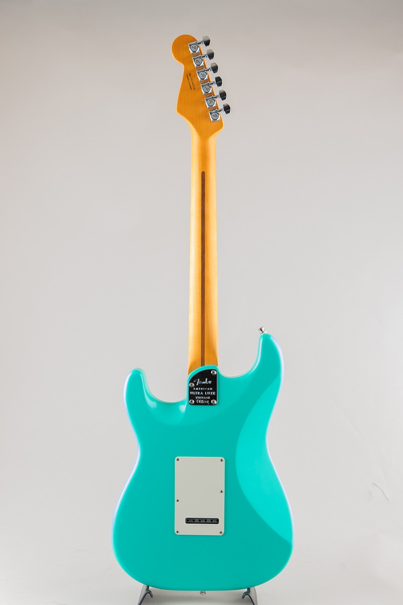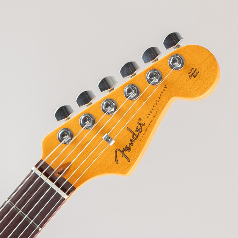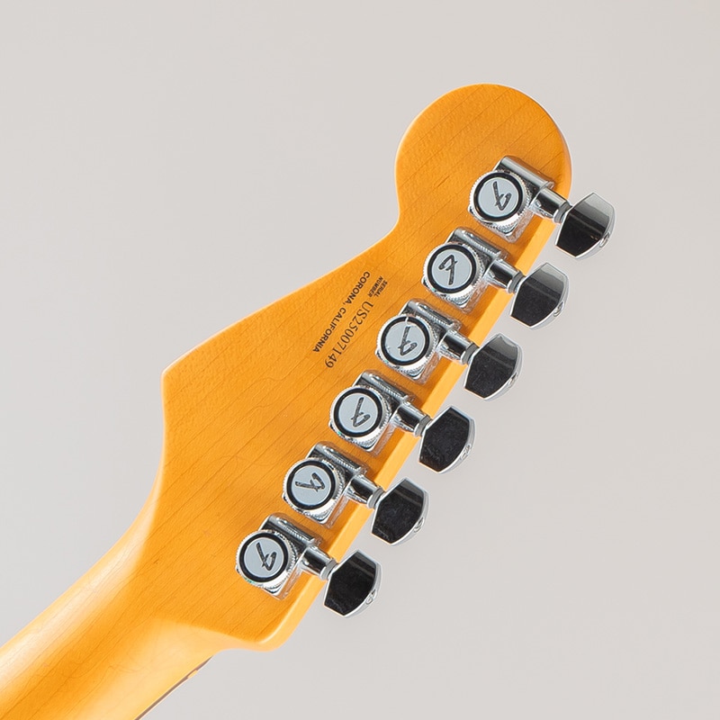 ハードウェアには、コールドロールドスチールブロックとポリッシュフィニッシュのステンレススチールブロックサドルをフィーチャーした2点支持American Ultraシンクロナイズドトレモロ、素早い弦交換と優れたチューニング安定性を誇るデラックスロッキングチューナーを装備し、高い演奏性を提供します。