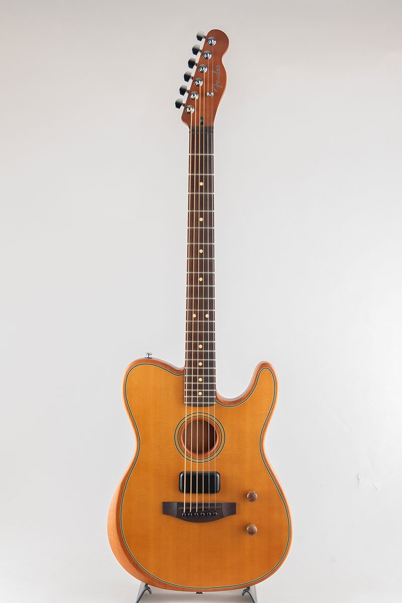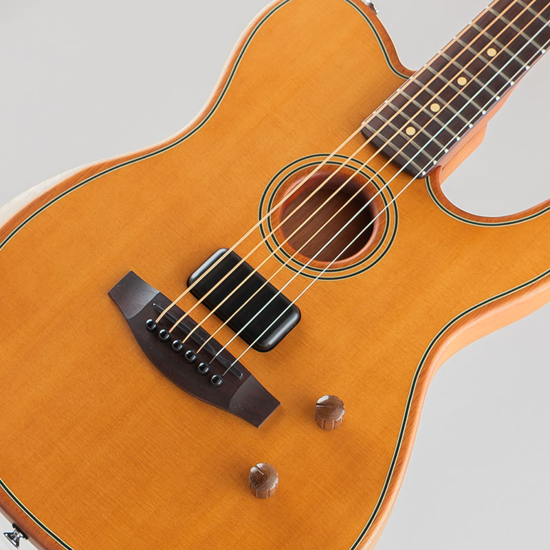 ブレイシングされたソリッドシトカスプルーストップ、フルチェンバー構造のボディ、革新的なFenderとFishman共同設計のアナログエレクトロニクス、ボリュームコントロール、マグネティックとピエゾの2種類のピックアップのブレンドコントロール、そしてFenderのアイコンとして親しまれている演奏性を備えたこのTelecasterは、Acoustasonicシリーズのパフォーマンスを手軽に体験できるエッセンスを備えています。