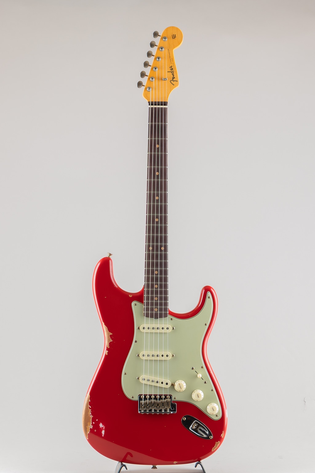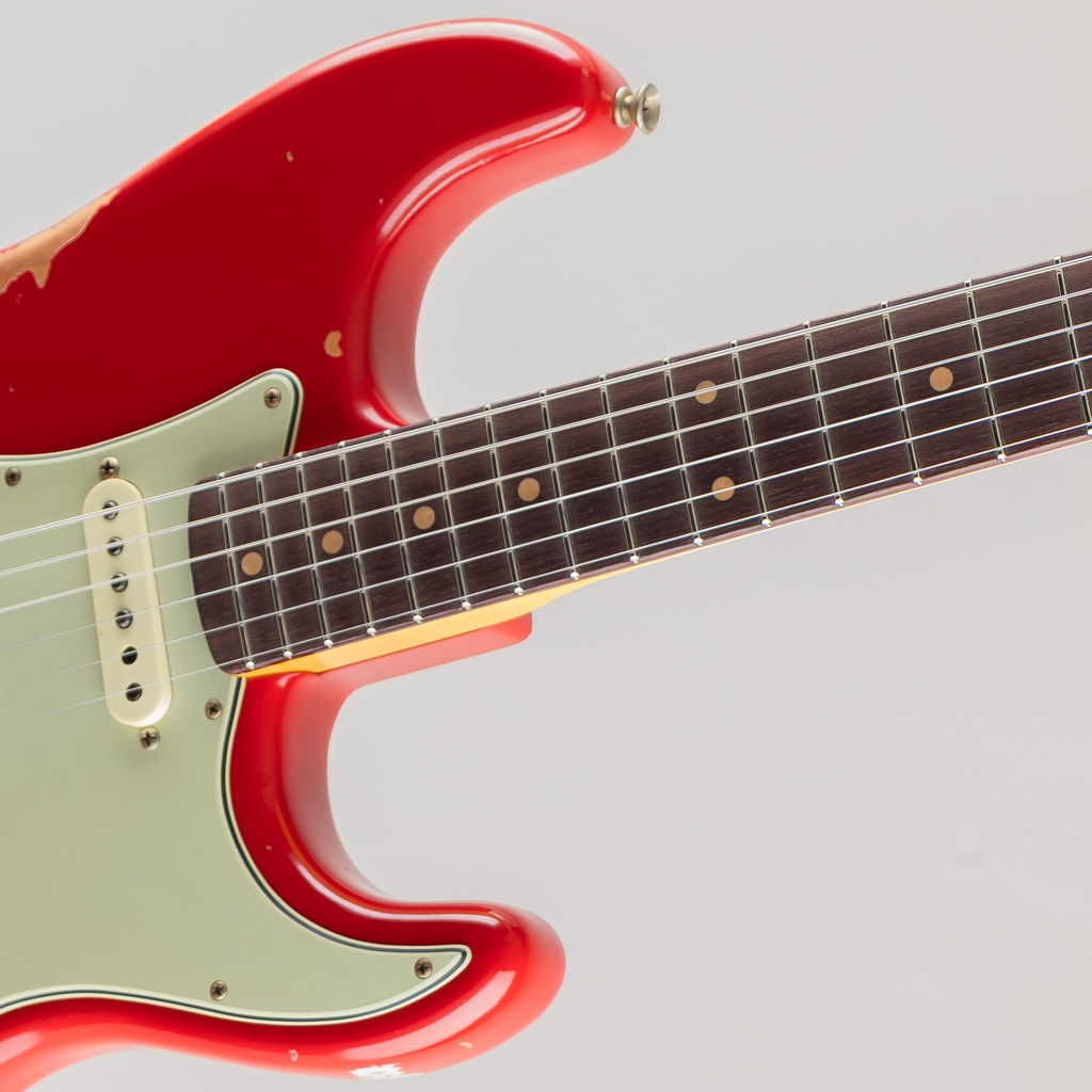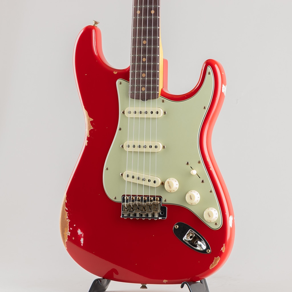 厳選したオフセットシームのアルダーボディーに従来の60s"C"シェイプ(.790_.930)とは異なるカスタム"C"シェイプ(.760_.970)のメイプルネック、スラブローズ指板のウッドスペック、ピックアップはHand Wound Fat 60s Stratocasterを3基搭載、7.25_9.5インチのコンパウンドラジアス、47095ミディアムフレットの採用等、演奏性に優れた仕様となっております。