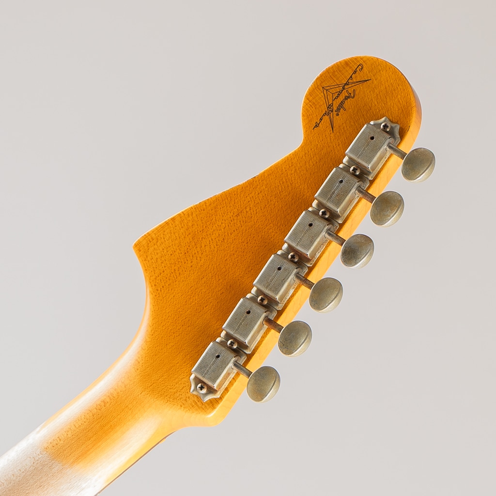 近年のカスタムショップでは定番となったRSDブリッジもポイントで従来の質量の軽いスレッドスチールと比較し、弦落ち防止と共にタイトでコシのあるサウンドが得られます。