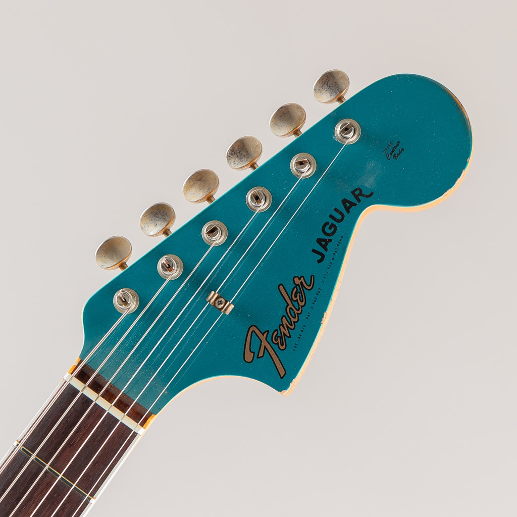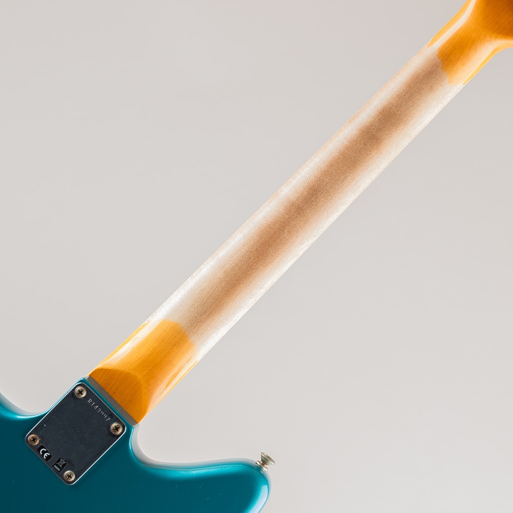 やや褪色したオーシャンターコイズメタリックカラー、マッチングヘッド、リアルなレリック加工、クールな佇まいに目を惹く一本です。