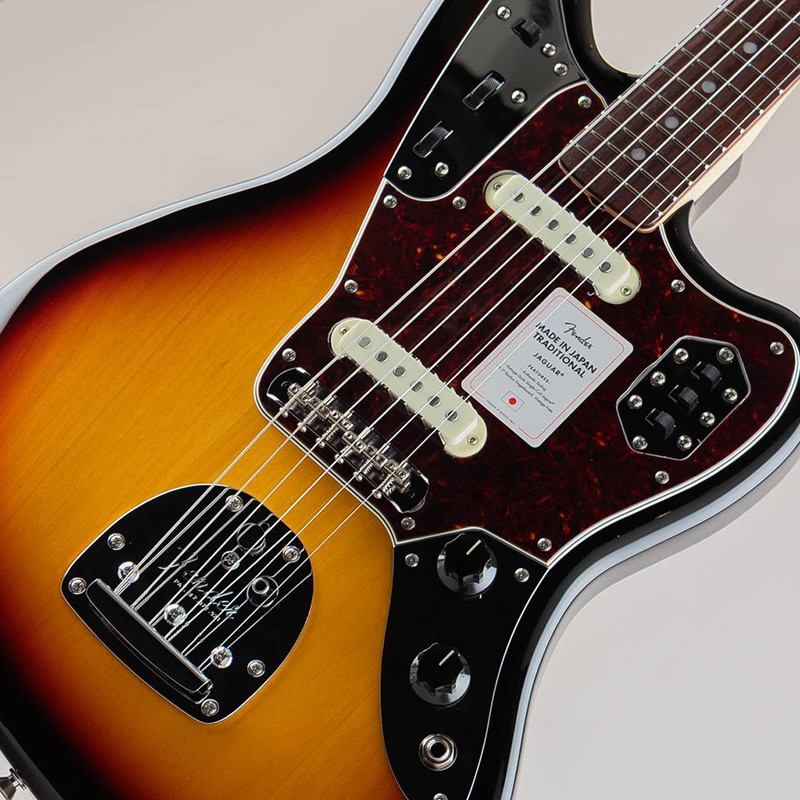 Made in Japan Traditional 60s Jaguarはグロスフィニッシュのバスウッドボディを採用。21本のヴィンテージスタイルフレットを装備した9.5インチラジアスの”U”シェイプメイプルネックがTraditionalシリーズならではのクラシカルな演奏製を提供します。フローティングトレモロテイルピース付きの6サドル式ヴィンテージスタイルブリッジ、そしてTraditionalシリーズのために選定されたオリジナルピックアップはリアルで音楽的なヴィンテージトーンを奏でます。